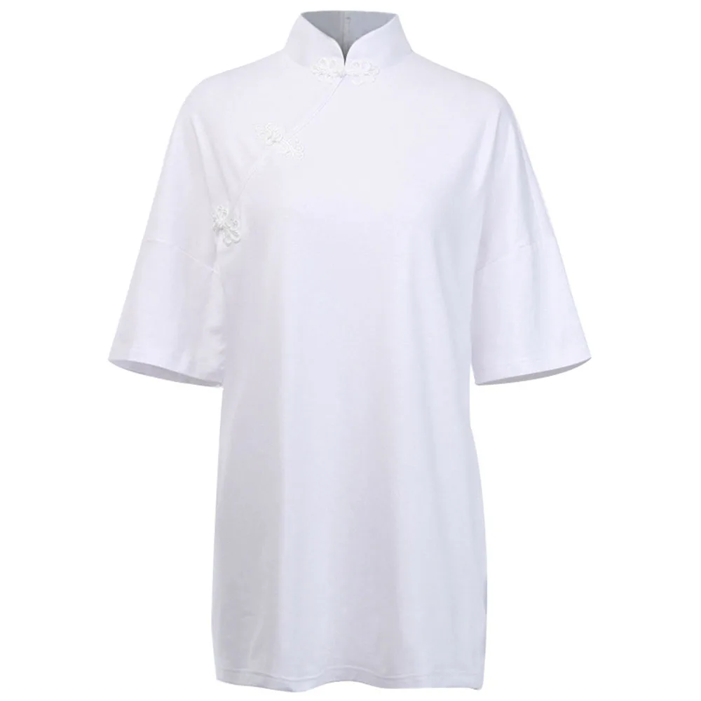 Product Name: Женский Чонсам в китайском стиле, длинная рубашка на пуговицах, короткий рукав, уличная одежда, сексуальный винтажный Harajuku Свободный Белый ...