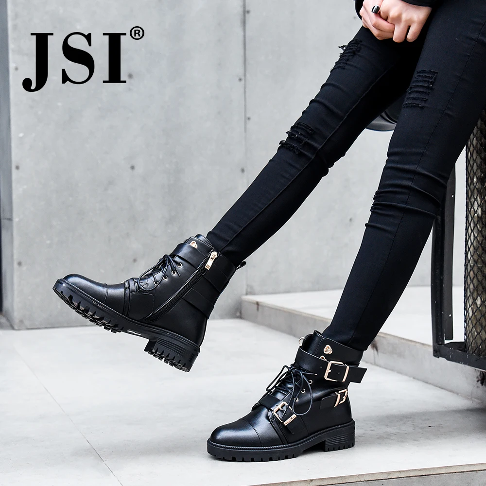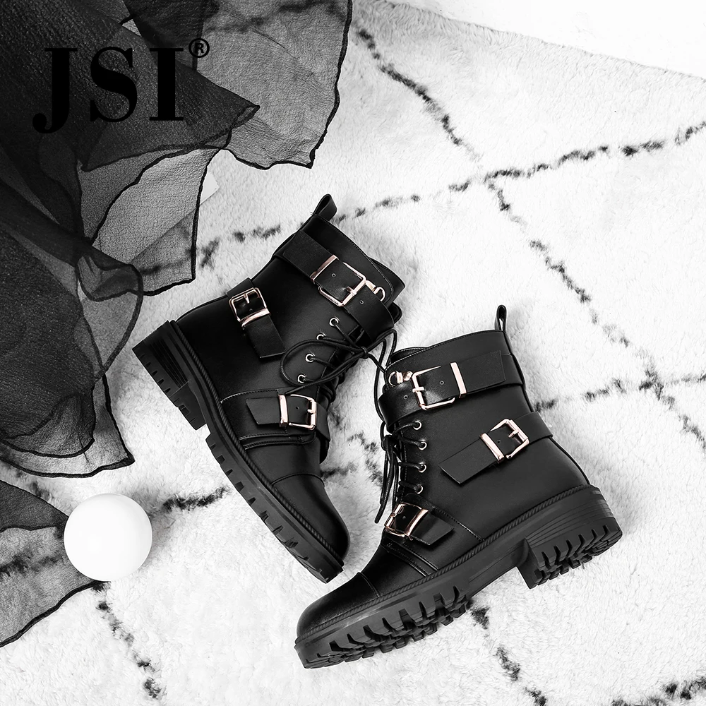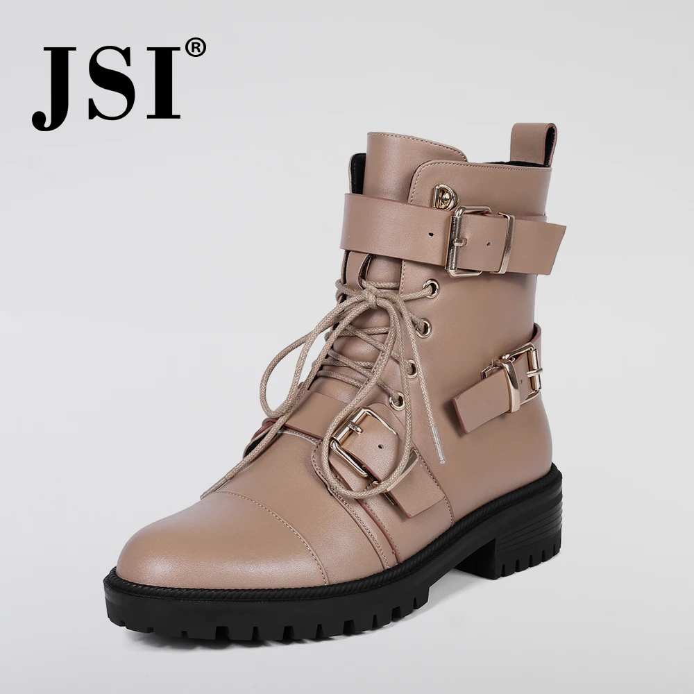 Product Name: JSI модные женские ботильоны из натуральной кожи; зимние ботинки на квадратном каблуке со шнуровкой и круглым носком; Качественная женская о...