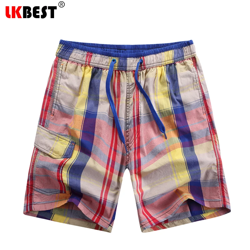 Special Offer Мужские пляжные шорты LKBEST, пляжные шорты свободного кроя в клетку, модель S01, лето 2019 Discount 60% Today!
