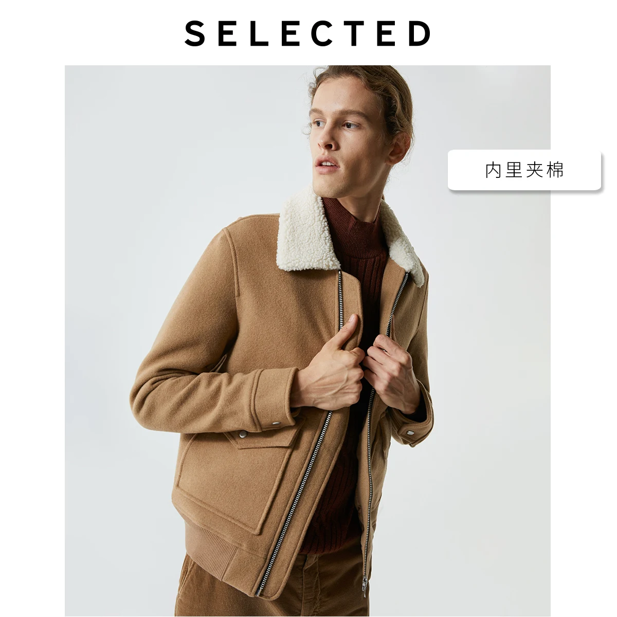 Special Offer Мужское Короткое шерстяное хлопковое пальто с песочным принтом S | 419427544 Discount 61% Today!
