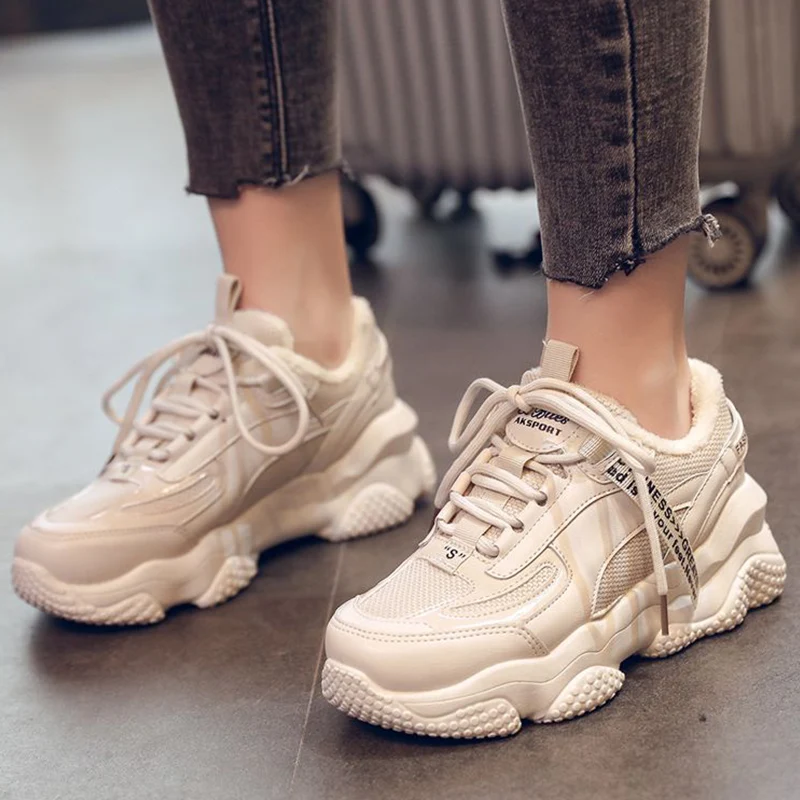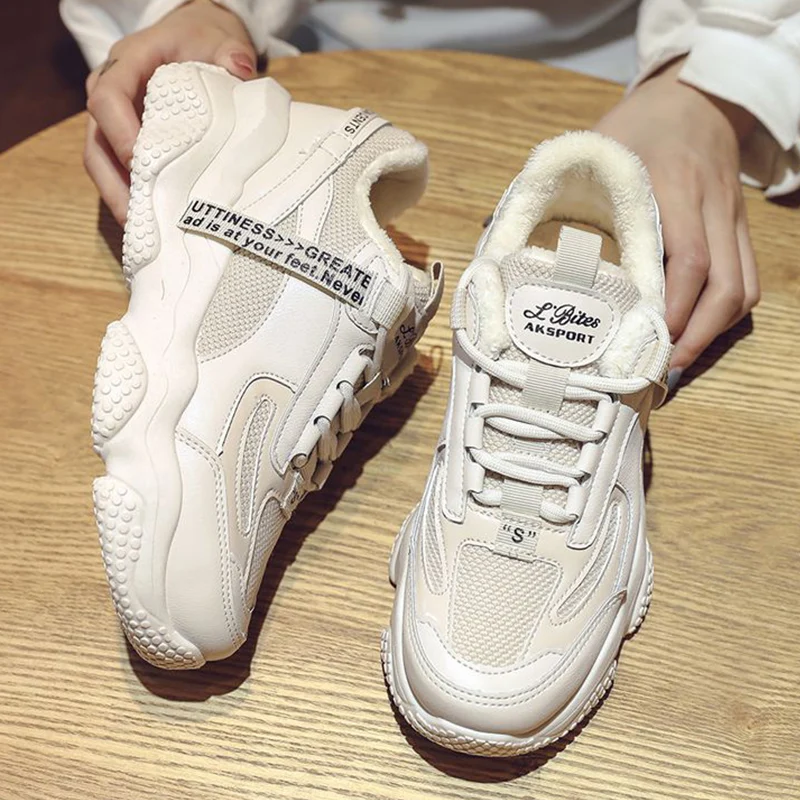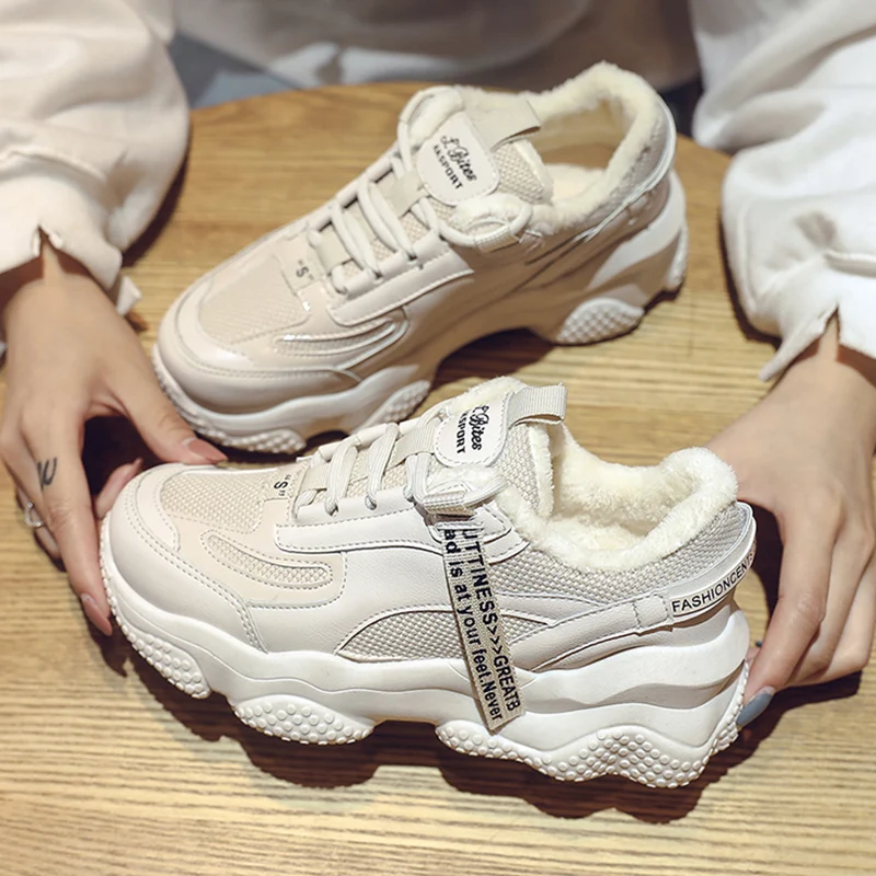 Product Name: Модные женские зимние кроссовки с теплым мехом; кроссовки на платформе; Повседневная обувь бежевого цвета; женские кроссовки; besket femme