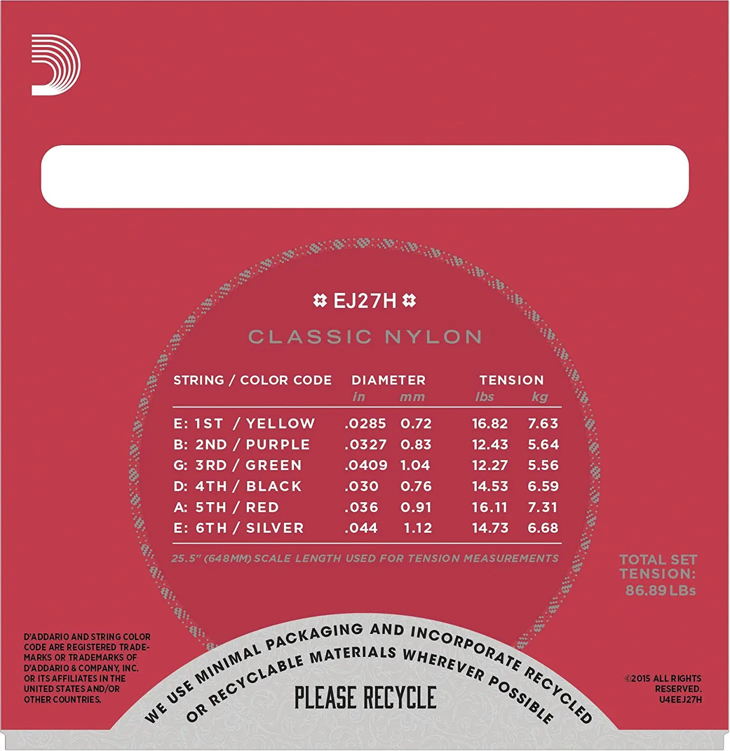Product Name: D Addario EJ27H EJ27N студенческие нейлоновые Классические гитарные струны, жесткое нормальное натяжение