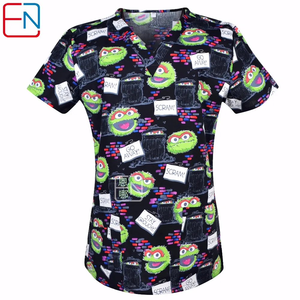 Product Name: Женская медицинская форма, топы для медсестер, хирургический принт, v образный вырез, хлопок, короткий рукав, топы, больничная форма для женщ...