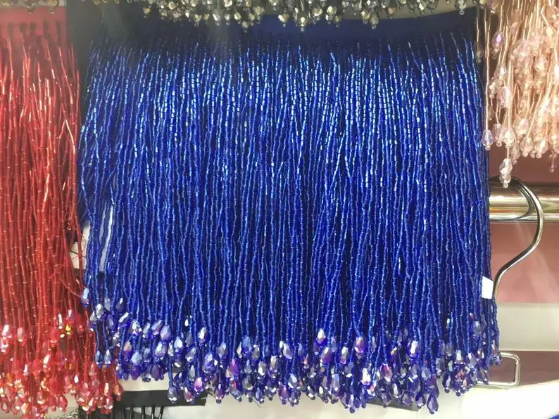 (15% Off) Купить 1 ярд Золотой тяжелый шарик бахрома отделка для танцевального костюма, Haute Couture платье бисером золото серебро синий Цена Дешево