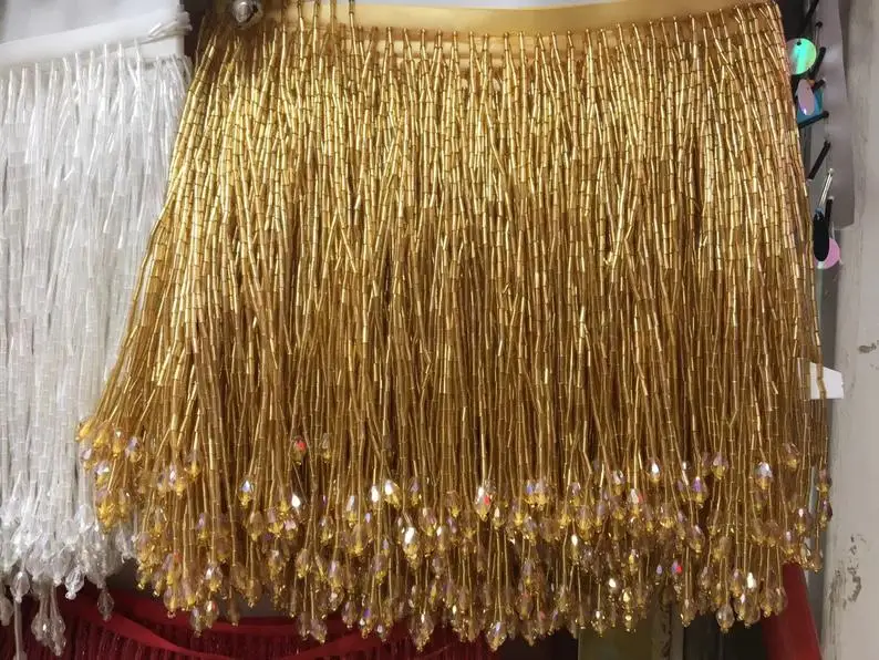Special Offer 1 ярд Золотой тяжелый шарик бахрома отделка для танцевального костюма, haute couture платье отделка бисером бахрома золото серебро синий Discount 15% Today!