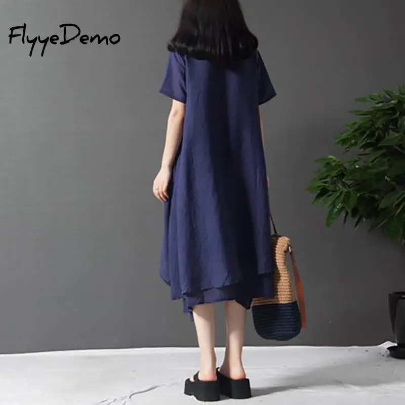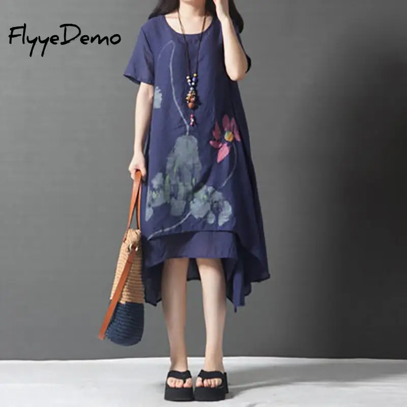 Product Name: Женское Повседневное платье с цветочным принтом Boho, свободное винтажное двухслойное платье с круглым вырезом в китайском стиле, лето 2019