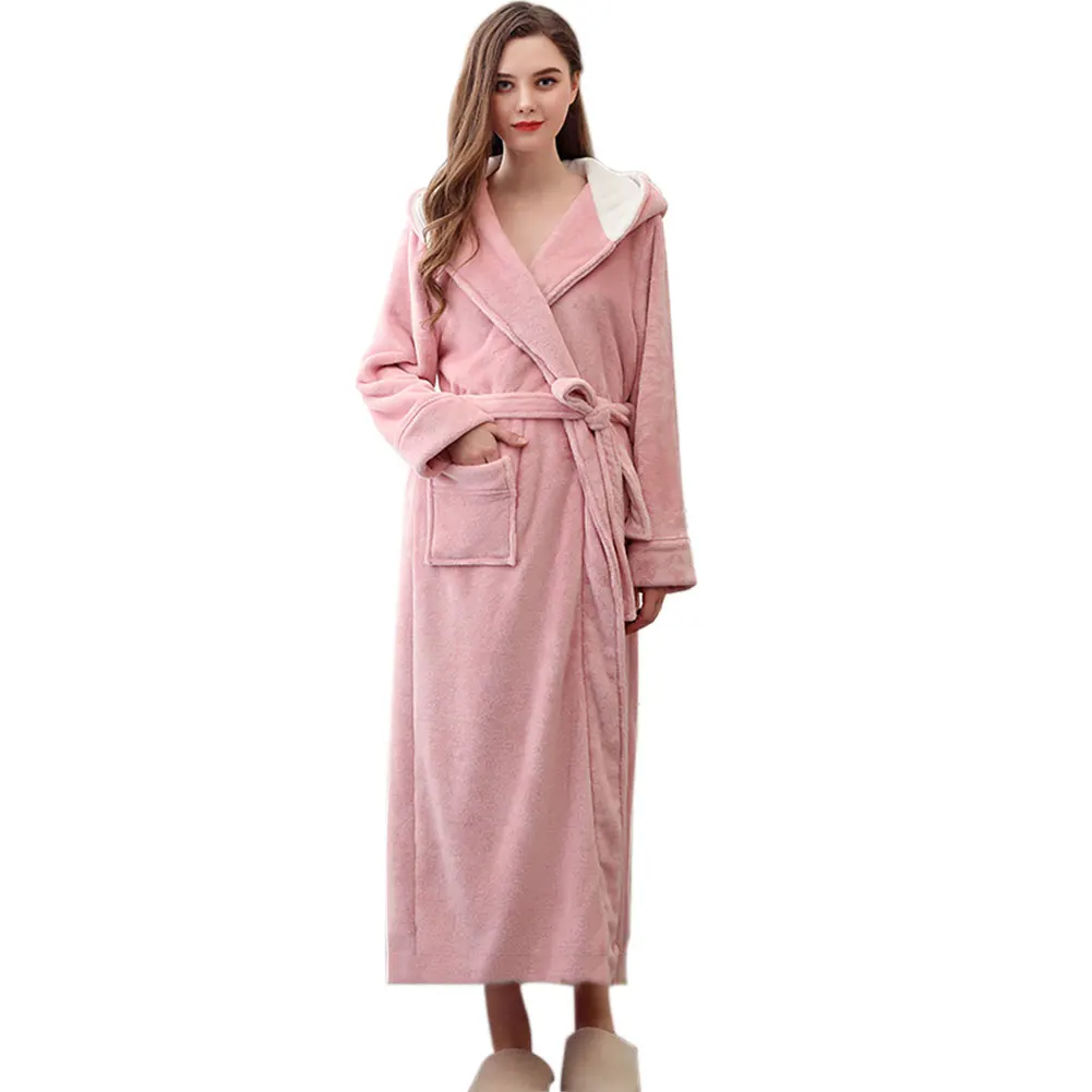 Special Offer Повседневный теплый халат с карманом на осень и зиму с длинным рукавом, утолщенный женский домашний халат с поясом, женский халат, элегантны... Discount 25% Today!