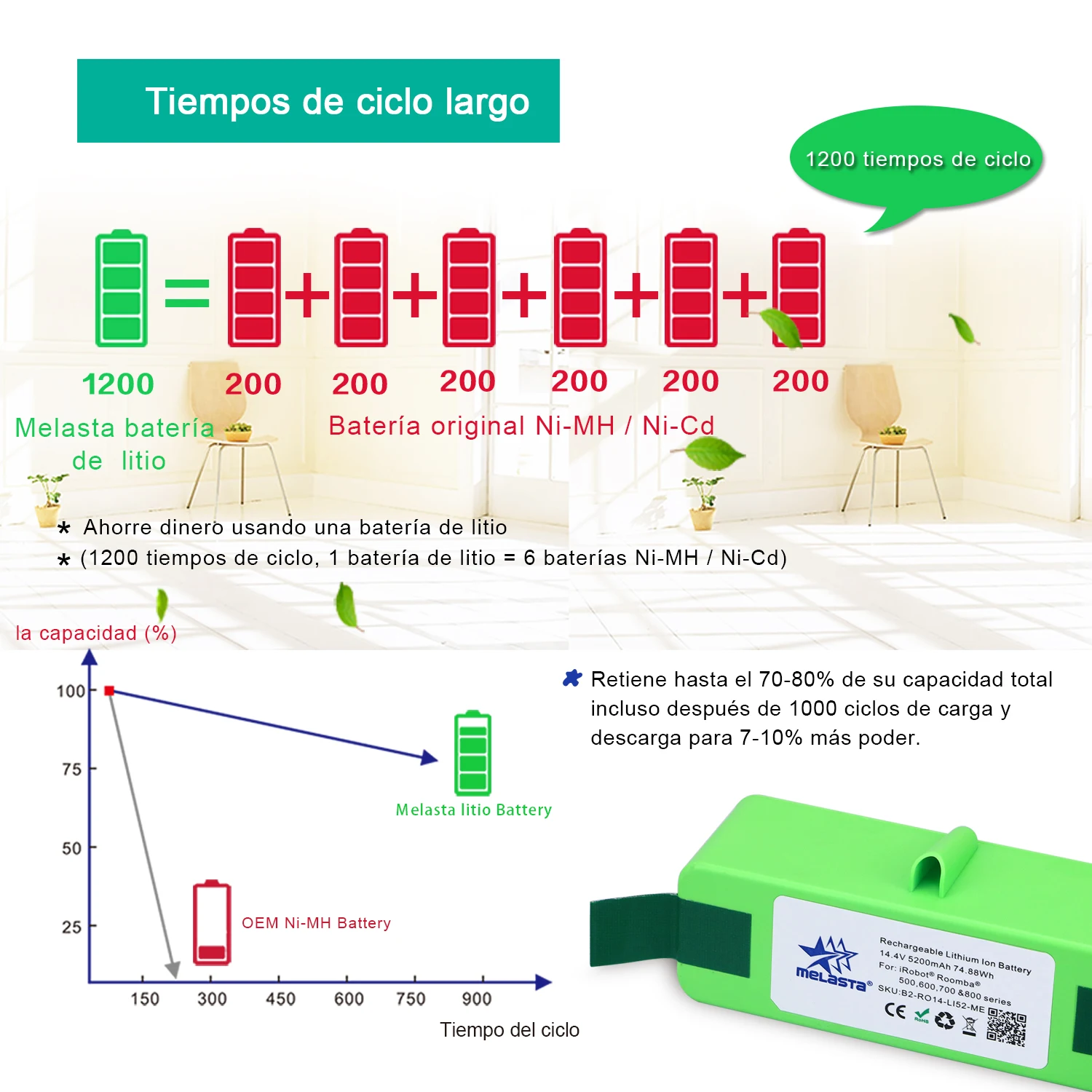 Product Name: Мексиканский склад 14,4 V 5.2Ah литий ионный аккумулятор для iRobot Roomba 500 600 700 800 Series 510 530 550 560 620 650 770 780 870 880 R3