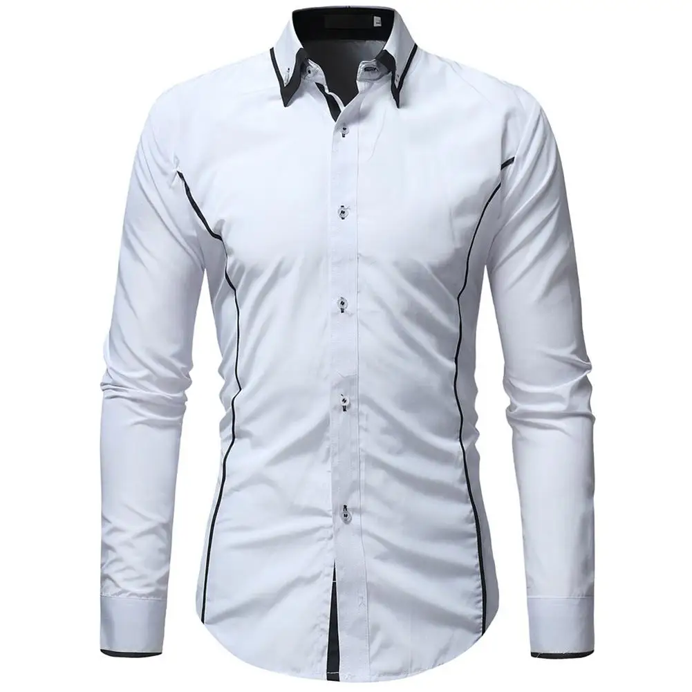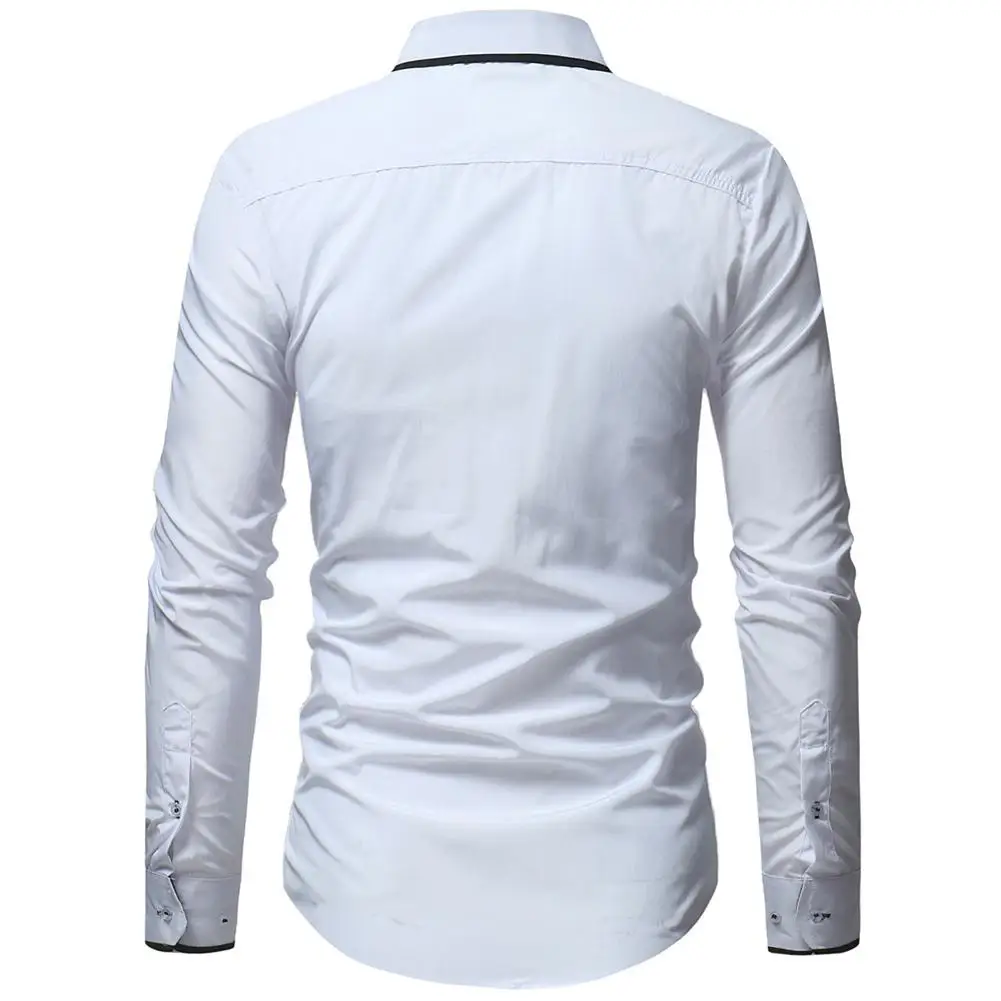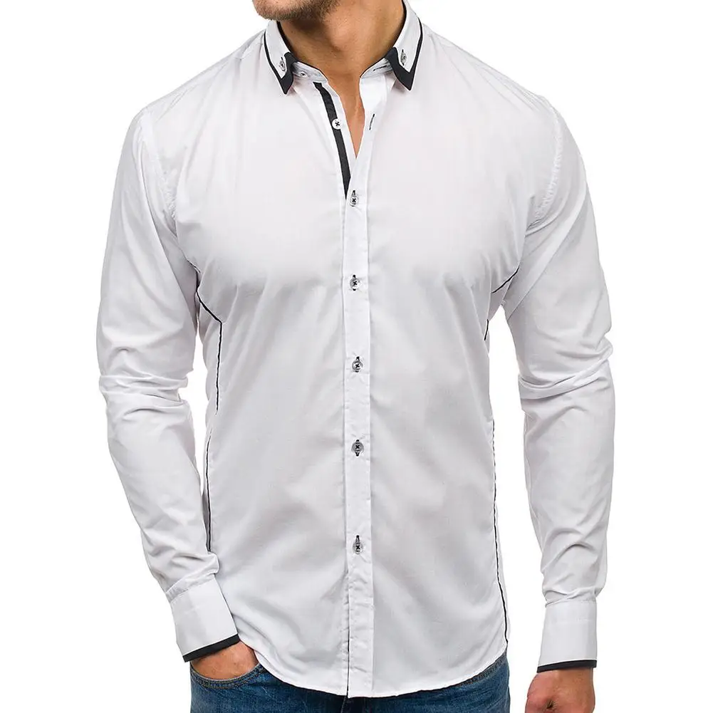 (36% Off) Купить Мужские модные тонкие повседневные рубашки с отворотом, топы длинными рукавами, осенние Рубашки, хит, цвет белый, черный, муж... Продажа Дешево