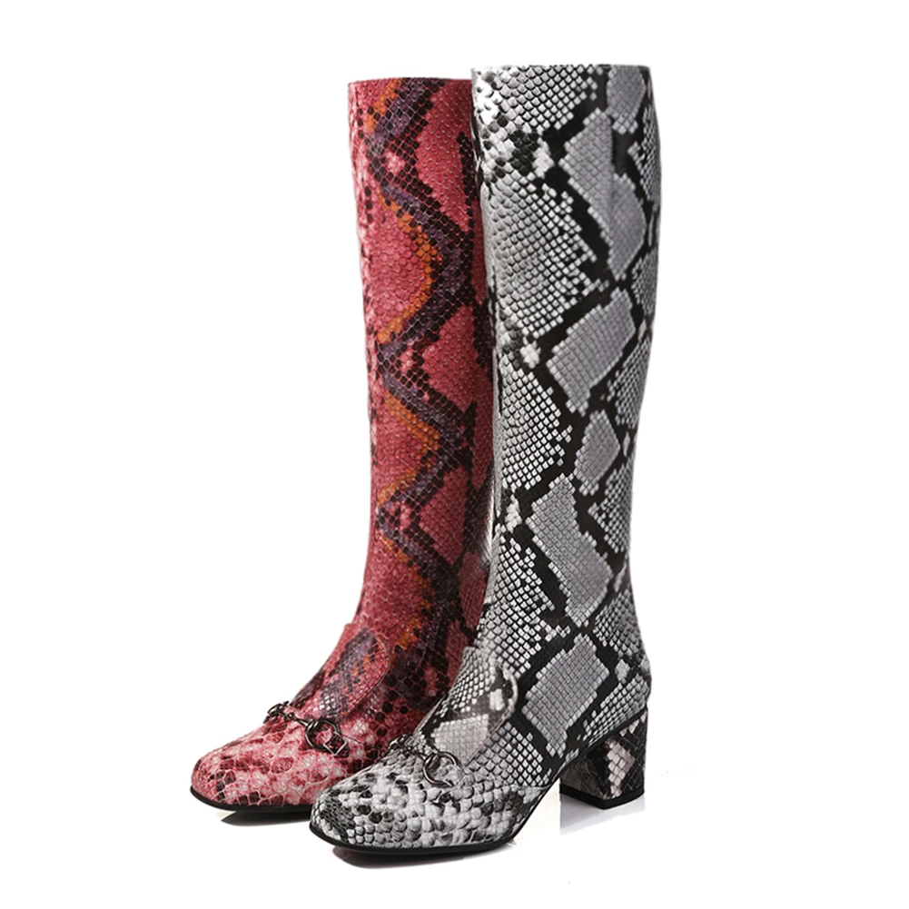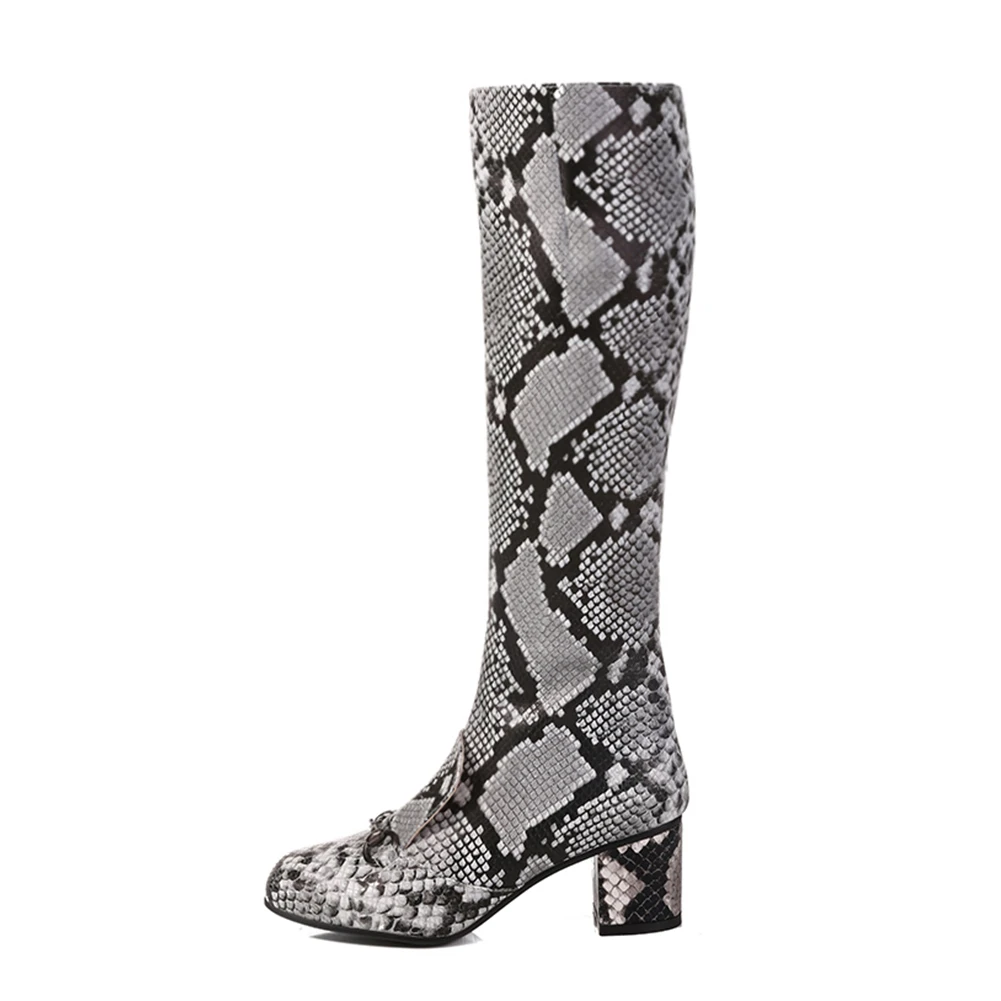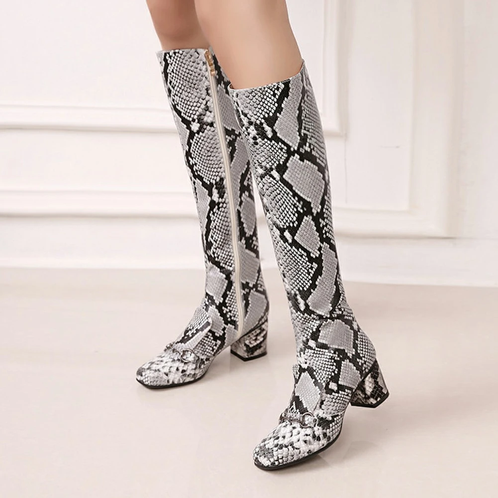 (38% Off) Купить Женские ботинки на молнии Dilalula, сапоги до середины икры массивном каблуке со змеиным принтом, большие размеры 34 43, 2019 Цена Дешево