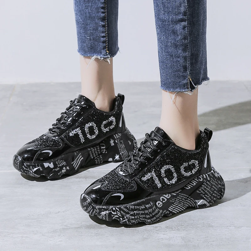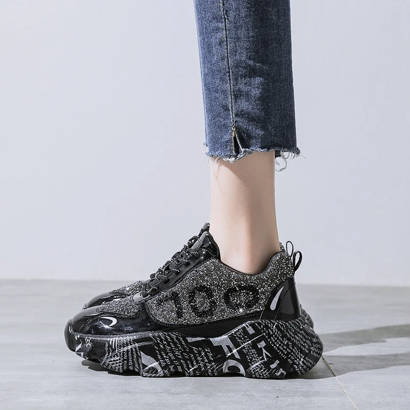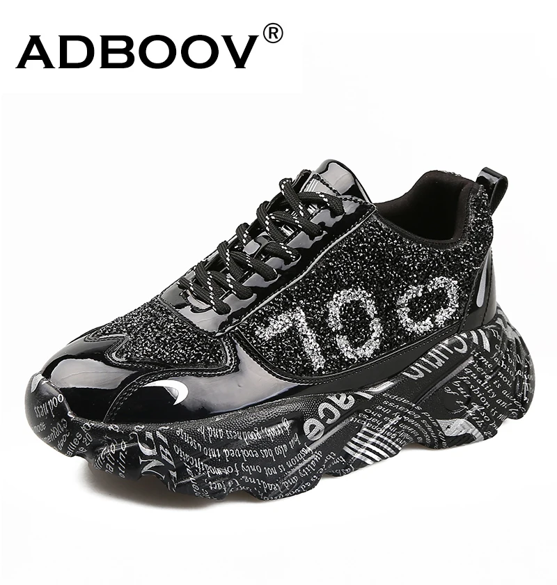 Special Offer ADBOOV 700 кроссовки на платформе с блестками; женская модная повседневная обувь из лакированной кожи Discount 40% Today!