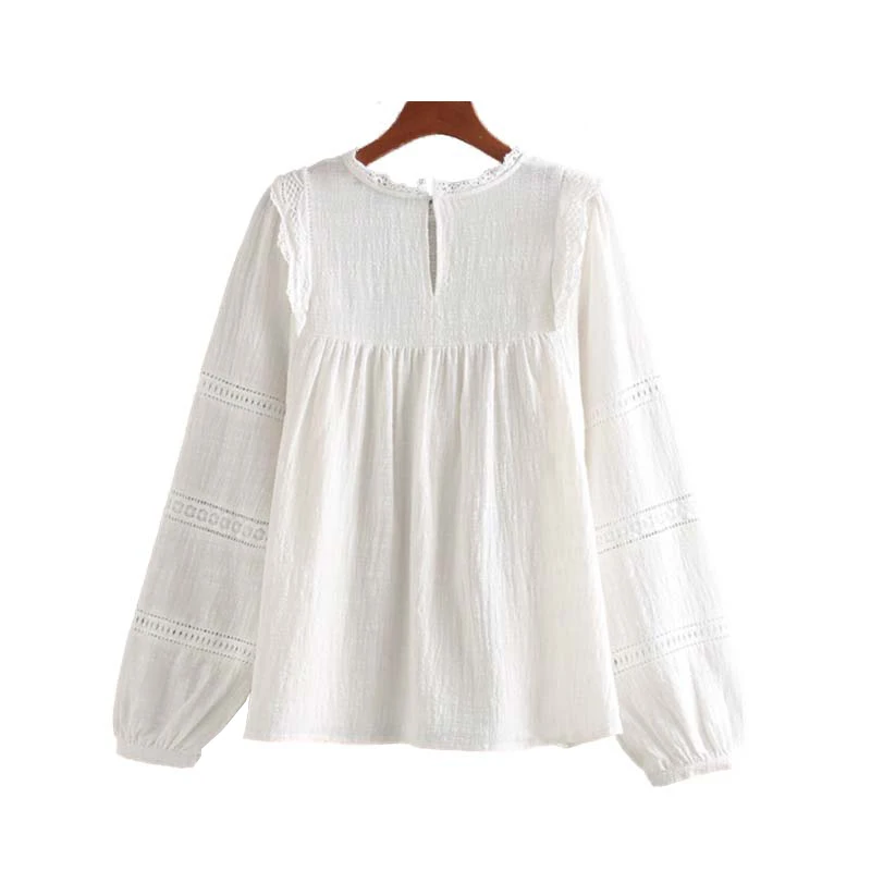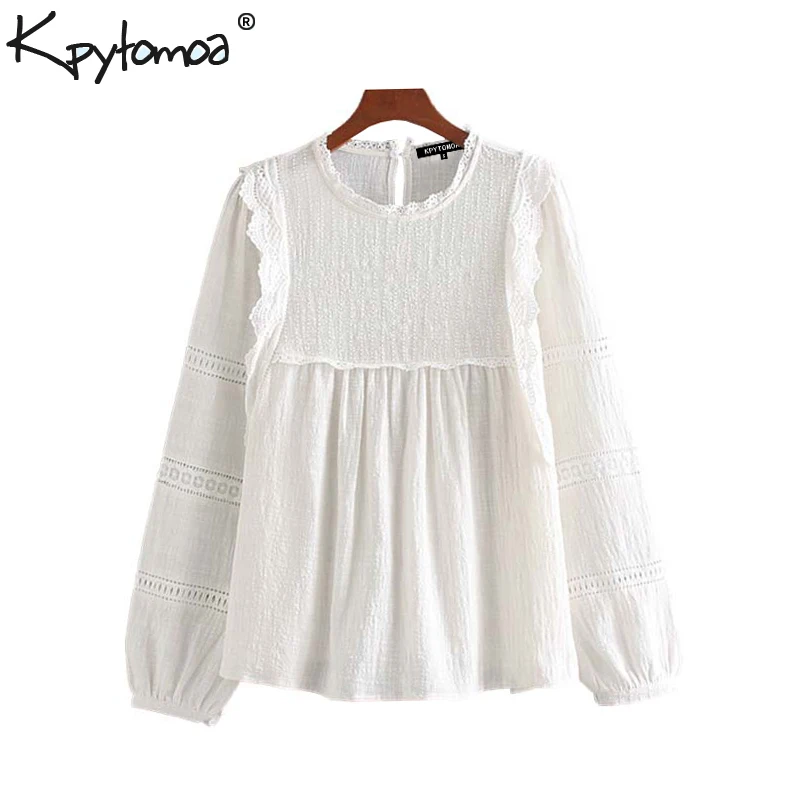 Product Name: Винтажные элегантные белые блузки с оборками для женщин 2020, модные женские рубашки с длинным рукавом и круглым вырезом, шикарные топы