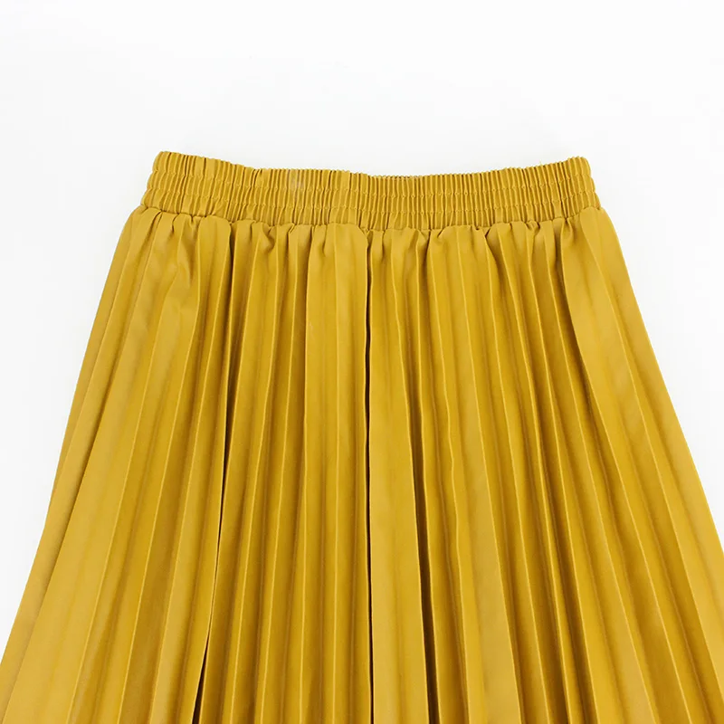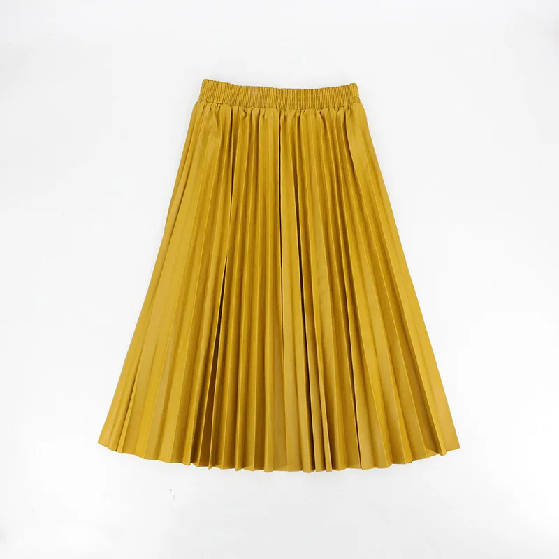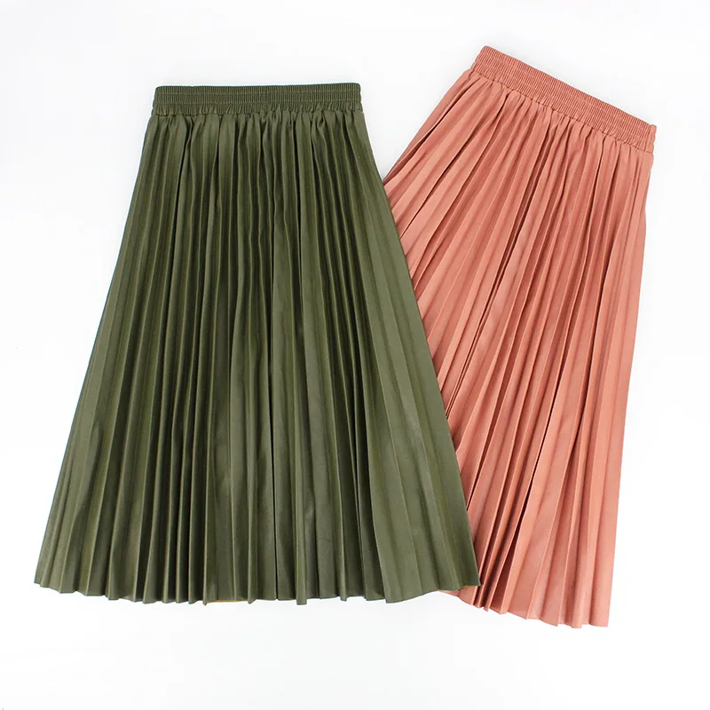 Product Name: Зимние женские юбки плиссированные кожаные юбки с высокой талией эластичная талия линия длиной до колен женская юбка