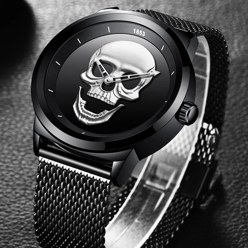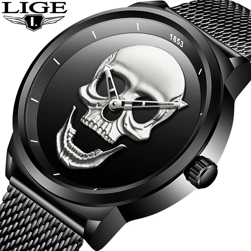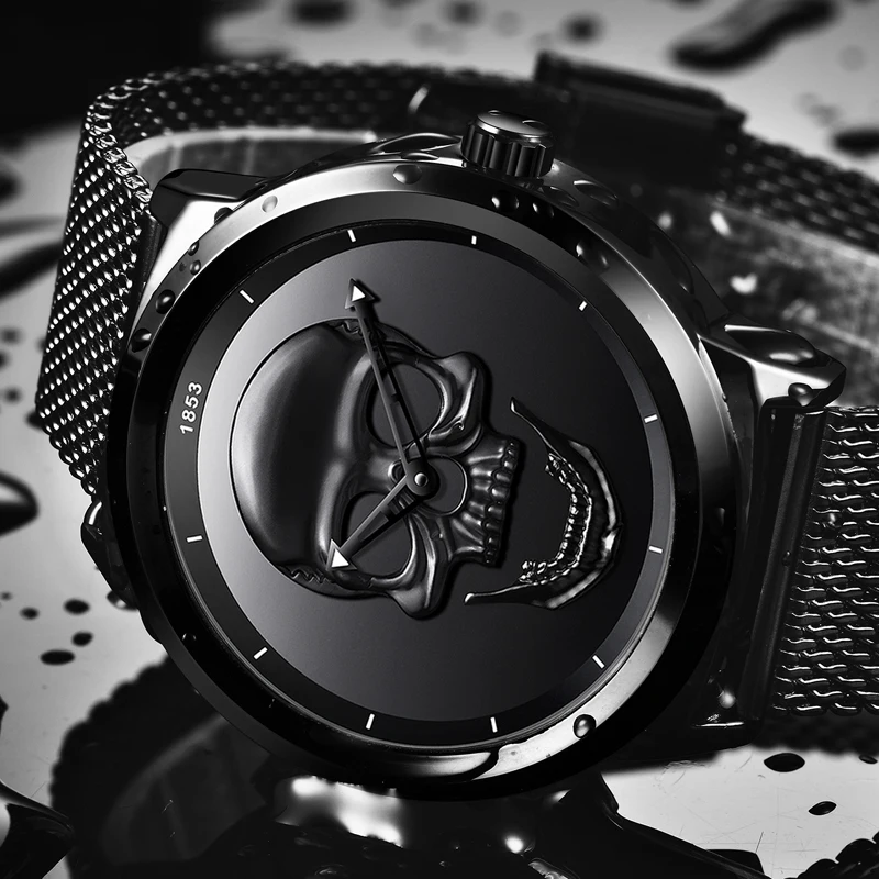 Product Name: 2018 Relojes мужские часы Топ бренд Повседневная мода 3D череп нержавеющая сталь водонепроницаемые военные спортивные наручные часы Relogio Masculino
