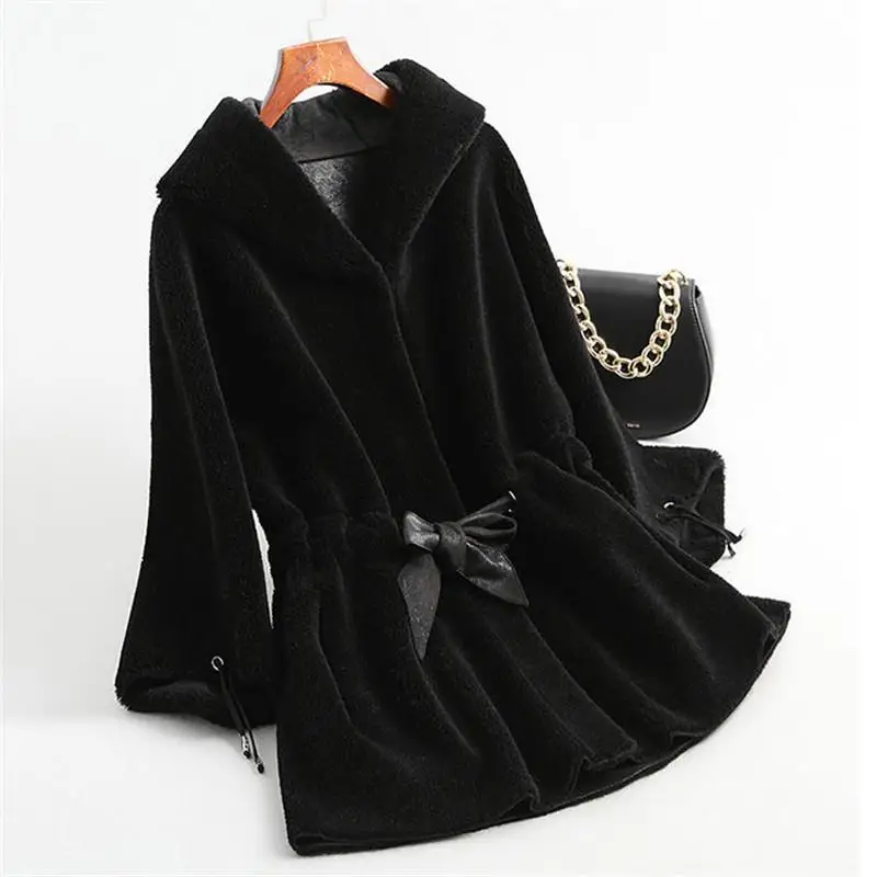 (48% Off) Купить Женское пальто с натуральным мехом, повседневное теплое из 100% шерсти овцы капюшоном, V269, зима 2019 Цена Дешево