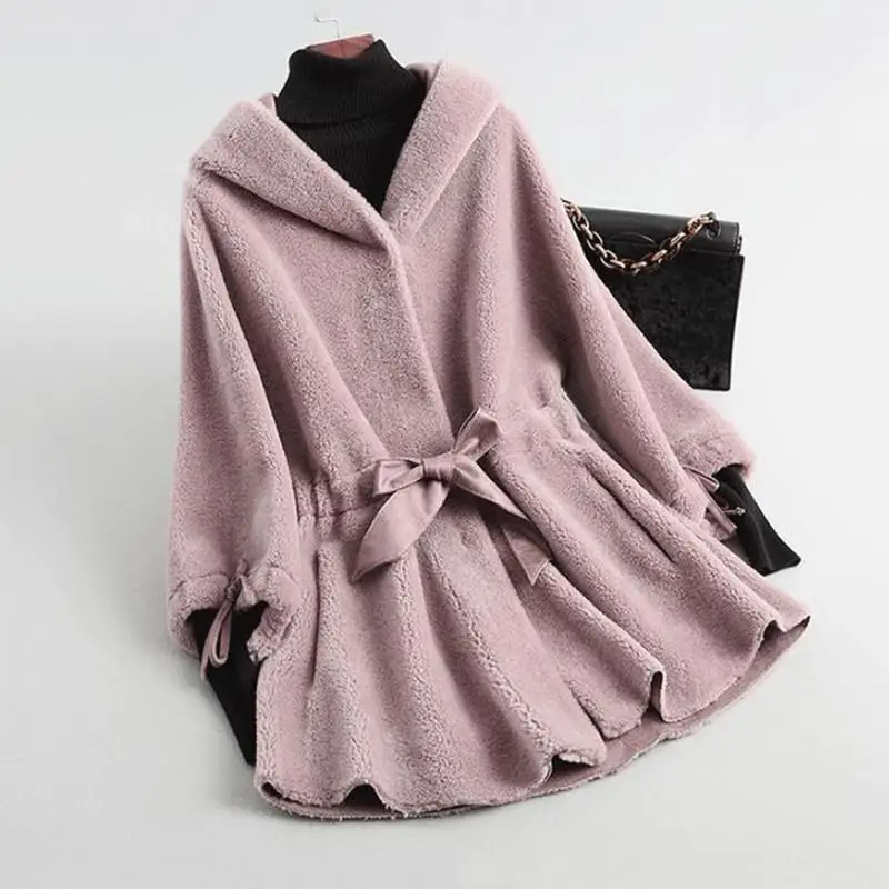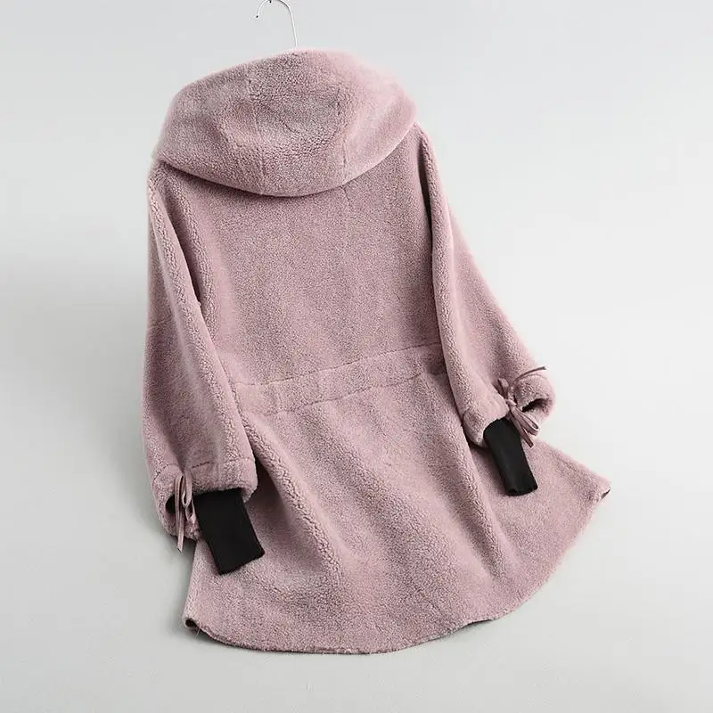 Product Name: Женское пальто с натуральным мехом, повседневное теплое пальто из 100% шерсти овцы с капюшоном, V269, зима 2019