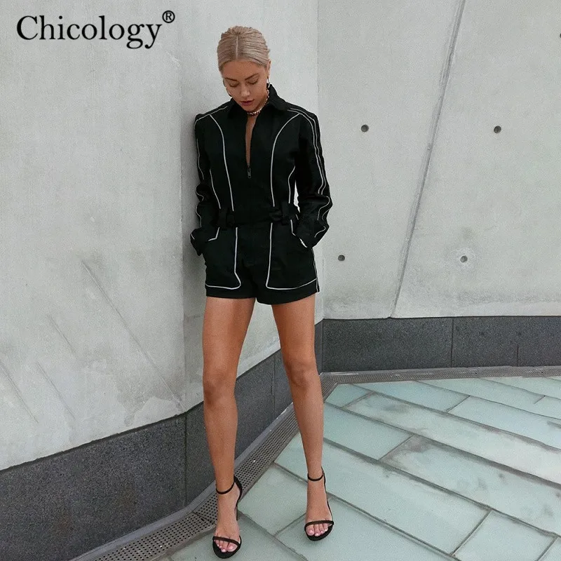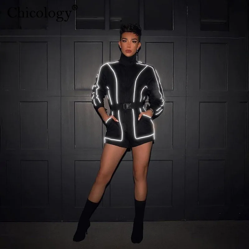 Special Offer Женский комбинезон на молнии Chicology, готический короткий комбинезон с светоотражающей полоской, уличная одежда, осень зима 2019 Discount 50% Today!