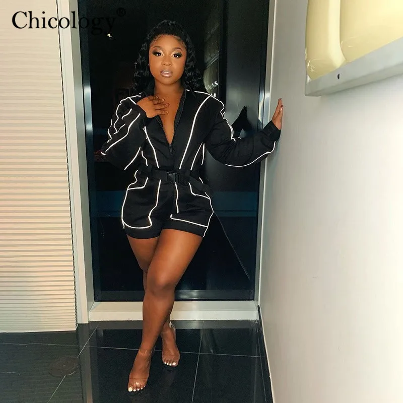 (50% Off) Купить Женский комбинезон на молнии Chicology, готический короткий с светоотражающей полоской, уличная одежда, осень зима 2019 Продажа Дешево