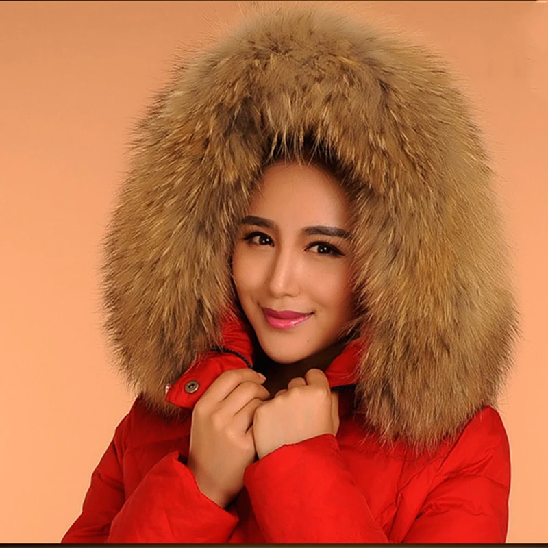 (51% Off) Купить JKP 2019, воротник из натурального меха енота, женский шарф 100% животных, зимнее теплое пальто, шапка, аксессуары, новые модн... Цена Дешево