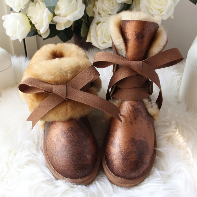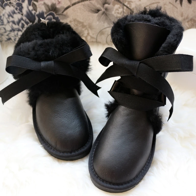 (52% Off) Купить G Zaco женские шерстяные ботинки; зимние ботинки из натуральной овечьей кожи; черные кожаные на шнуровке; Водонепроницаемая Ж... Продажа Дешево