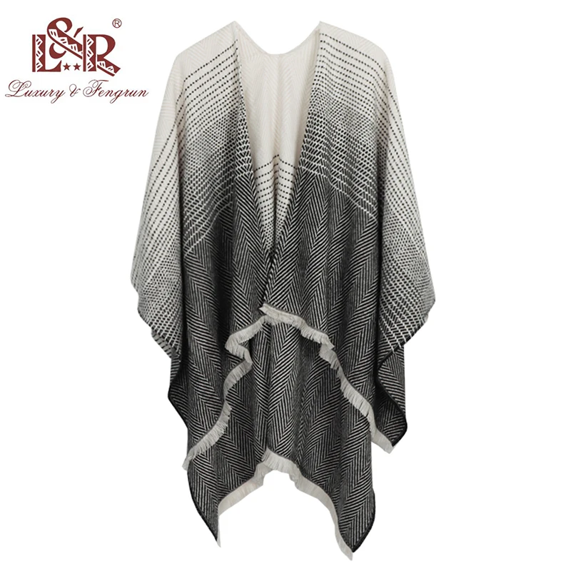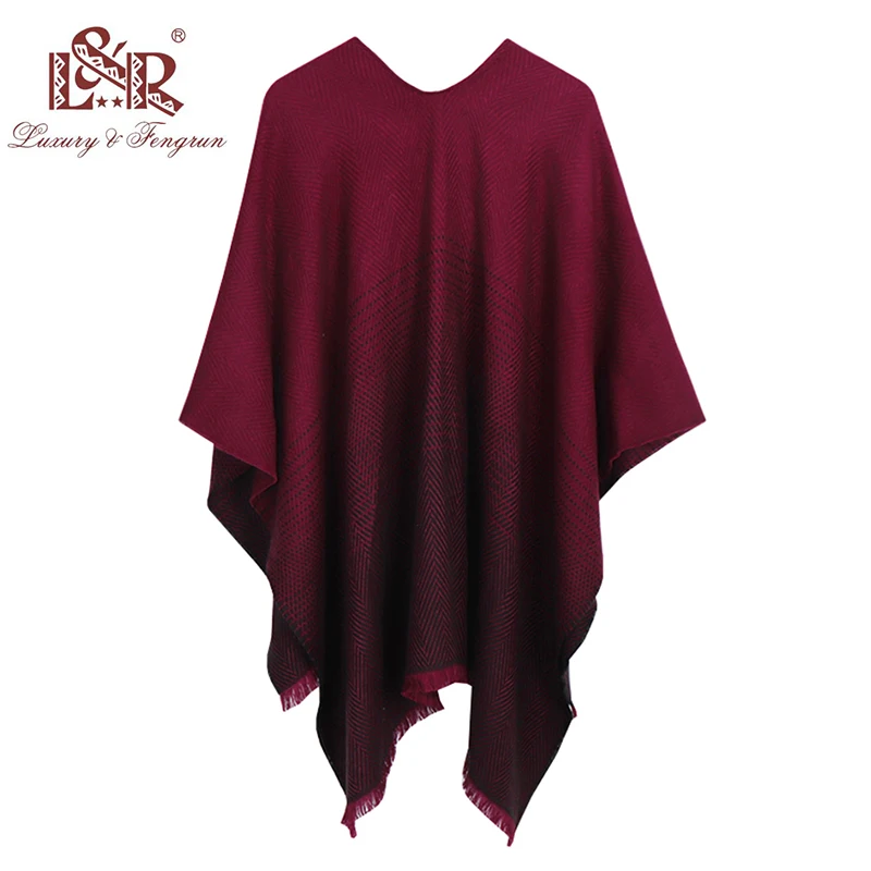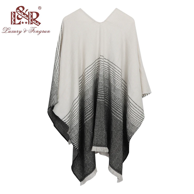 (60% Off) Купить Модный кашемировый вязаный пончо, Пашмина, женский зимний шарф, полосатый свитер с кисточками, теплая шаль, шарфы для женщин Цена Дешево