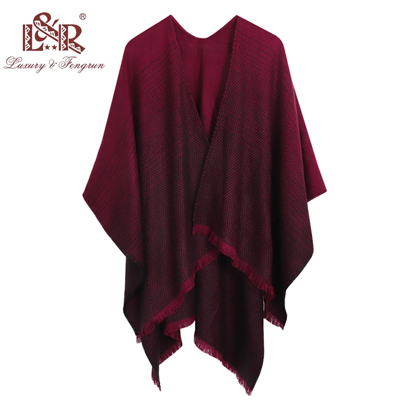 Special Offer Модный кашемировый вязаный пончо, Пашмина, женский зимний шарф, полосатый свитер с кисточками, теплая шаль, шарфы для женщин Discount 60% Today!