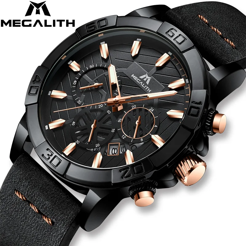 Product Name: Reloj hombre часы MEGALITH спортивные водонепроницаемые часы с хронографом мужские роскошные светящиеся часы от ведущего бренда мужские кожаные час...