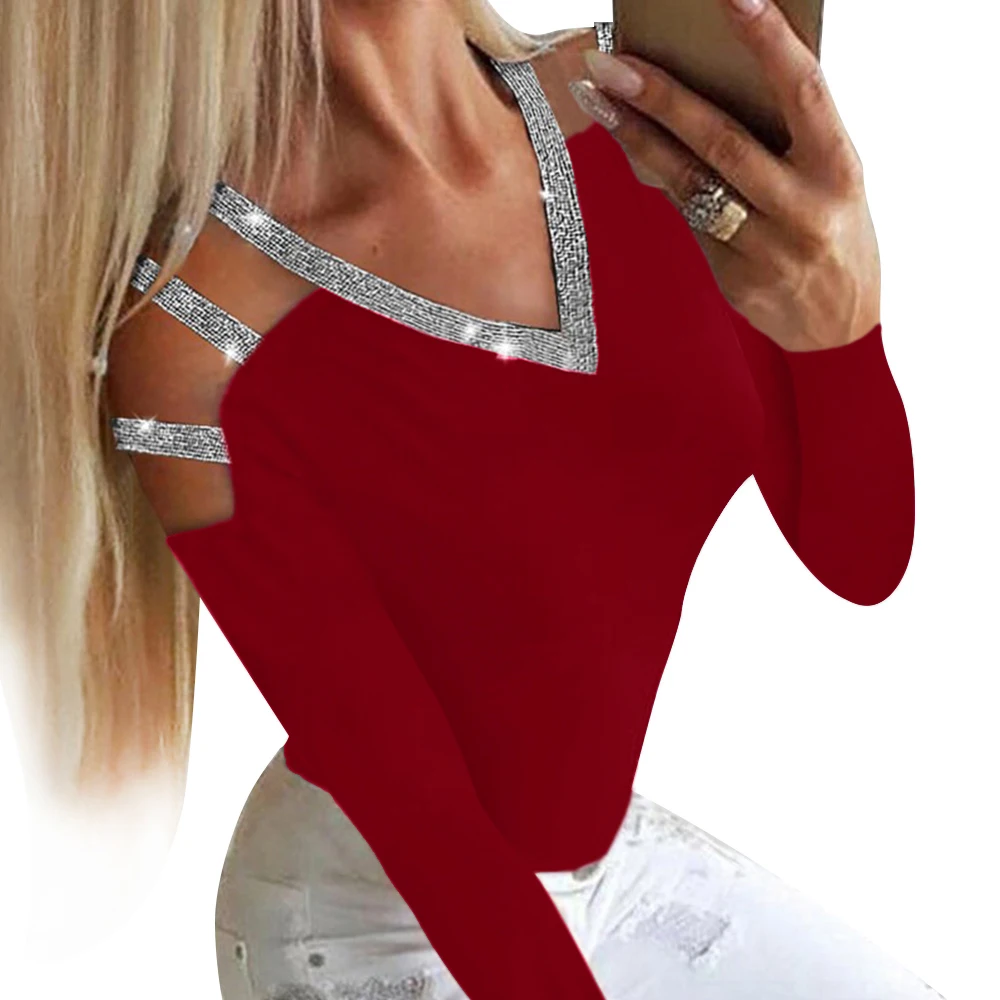 Special Offer PYL вязаные женские футболки, Осень зима, с длинным рукавом, с блестками, футболка, для девушек, обтягивающая футболка, для женщин, с вырезом, т... Discount 25% Today!