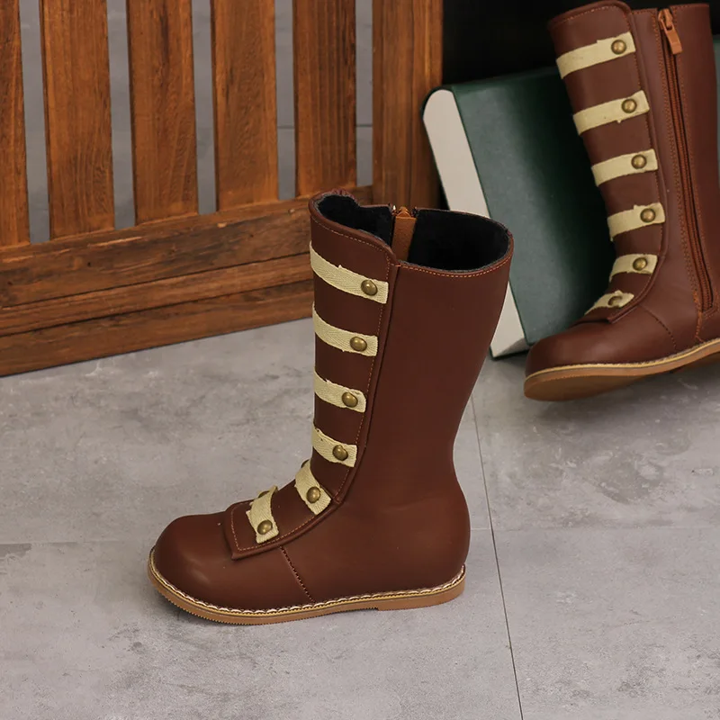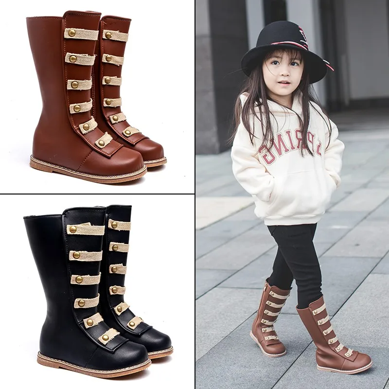 Product Name: Зимние высокие сапоги для девочек; Плюшевые Детские зимние сапоги в римском стиле; детская обувь из натуральной кожи; модные водонепроницае...