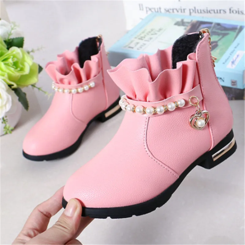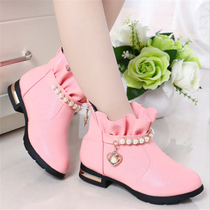 Product Name: Детские ботинки для девочек; ботильоны с жемчугом для маленьких девочек; мягкая теплая детская обувь из искусственной кожи; зимняя обувь; ра...