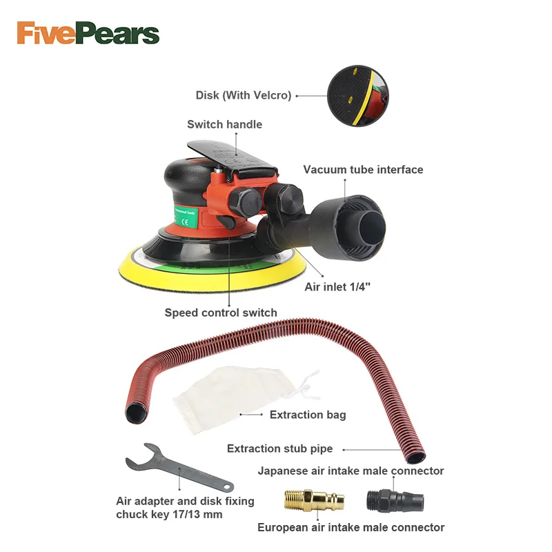 Product Name: Бесплатная доставка Оптовая продажа 6 дюймов воздушный шлифовальный станок с вакуумом 150 мм пневматический шлифовальный станок 6 \"пневматич...