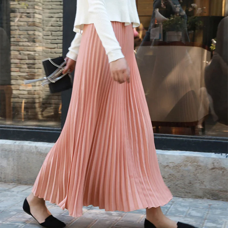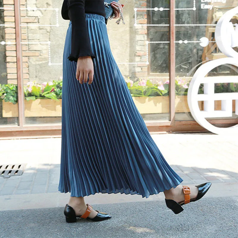 (43% Off) Купить Женская шифоновая плиссированная длинная юбка с высокой талией, однотонные макси юбки для женщин 2020, весна лето, модные повседневные д... Цена Дешево