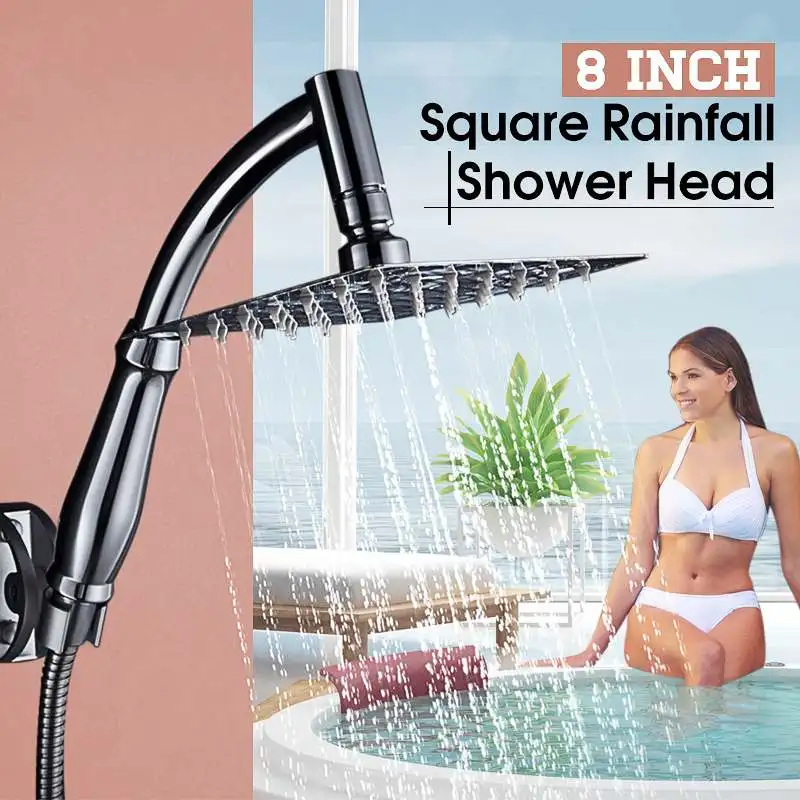 Product Name: 8 дюймов квадратная ультра тонкая душевая головка с 1,5 м из нержавеющей стали, держатель для душа, набор для душа