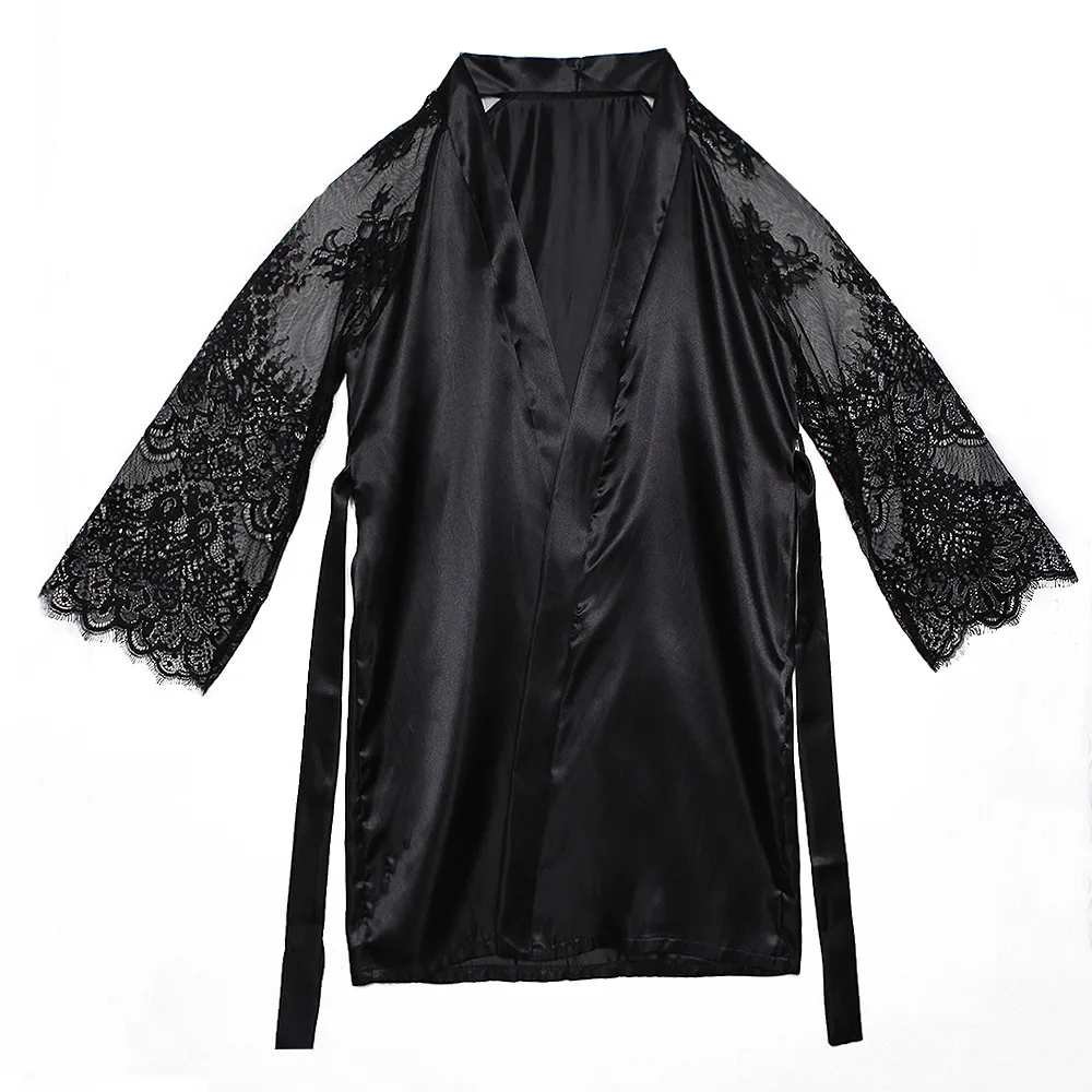 Product Name: Модные халаты, сексуальное пижамное платье, женское белье с халатиком, кружевная ночная рубашка с длинным рукавом, халат с поясом, женский х...