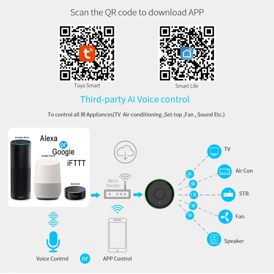 Product Name: Tuya умный дом wifi ИК пульт дистанционного управления Голосовое управление кондиционер ТВ коробка через Alexa Google IFTTT Wifi Универсальный ИК Контро...