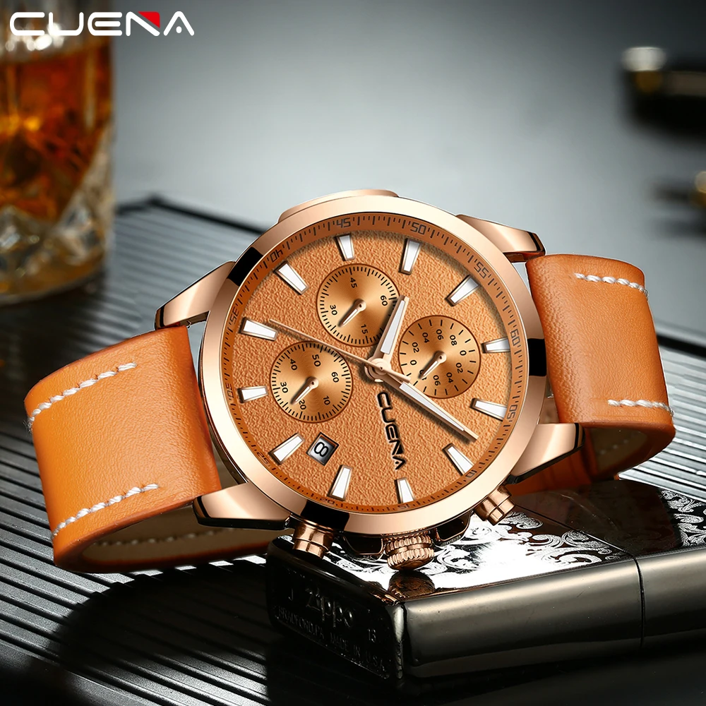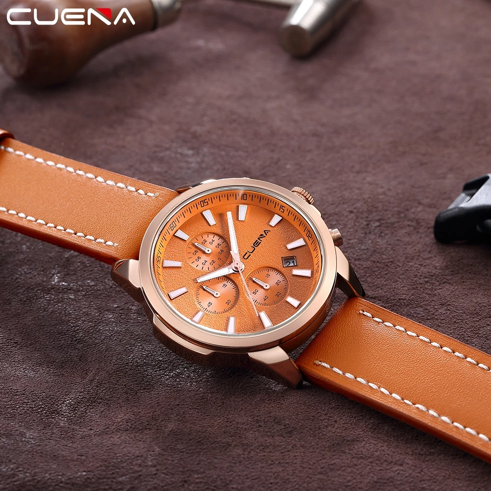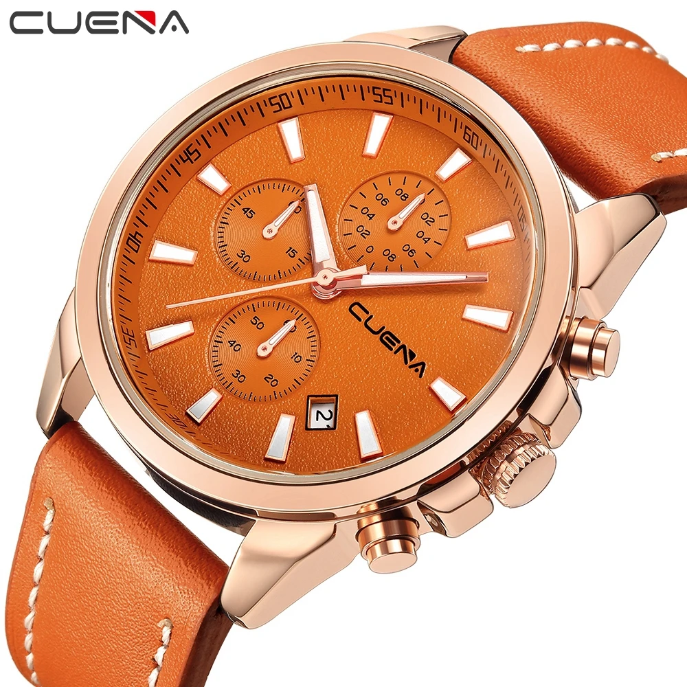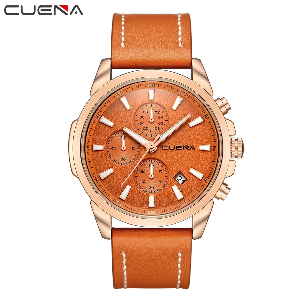Product Name: Новые часы мужские модные повседневные спортивные наручные часы с хронографом календарь кожаные мужские часы Оранжевые Hodinky Horloges Mannens Saat