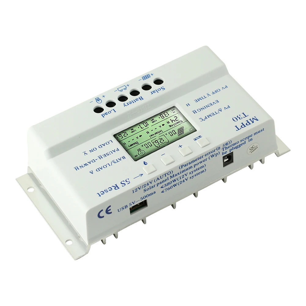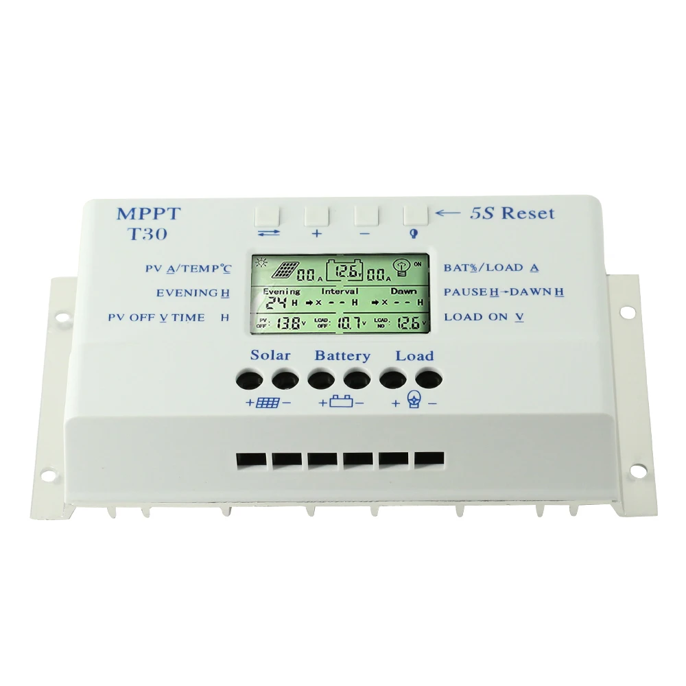 Product Name: Новый MPPT T30 солнечный регулятор жк дисплей CE сертифицирована свет и двойной таймер управления устанавливается 30A 12 В 24 В авто работа контрол...