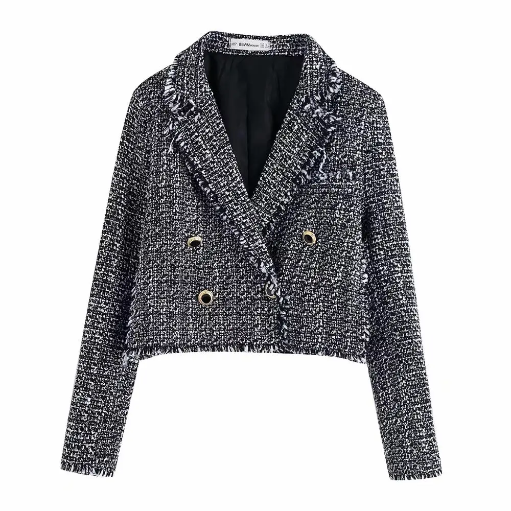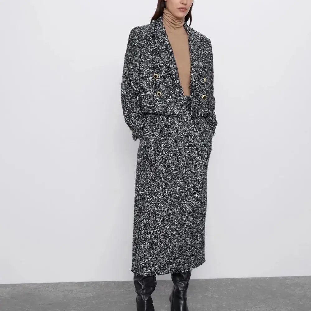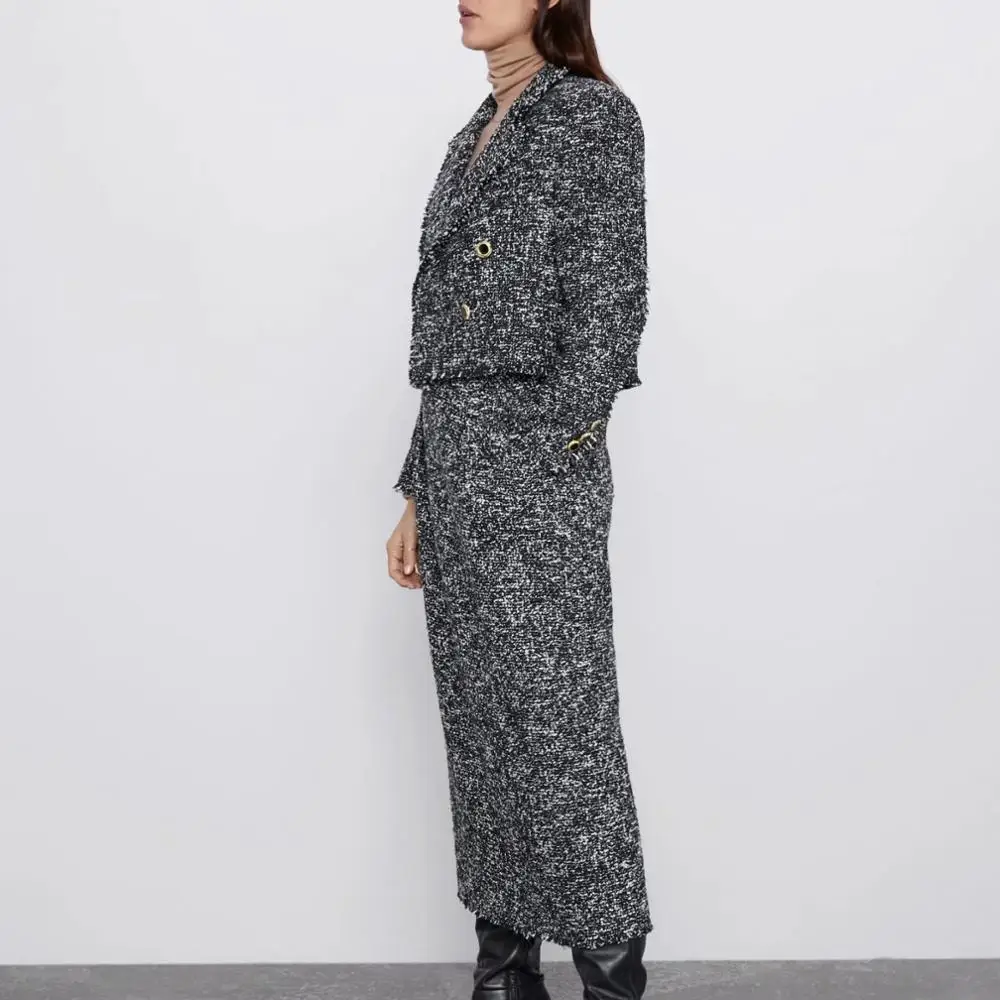 Product Name: ZA Осень Зима Женский костюм повседневное шикарное пальто твидовая куртка Женские пуговицы украшения шерстяной Блейзер Верхняя одежда Женс...