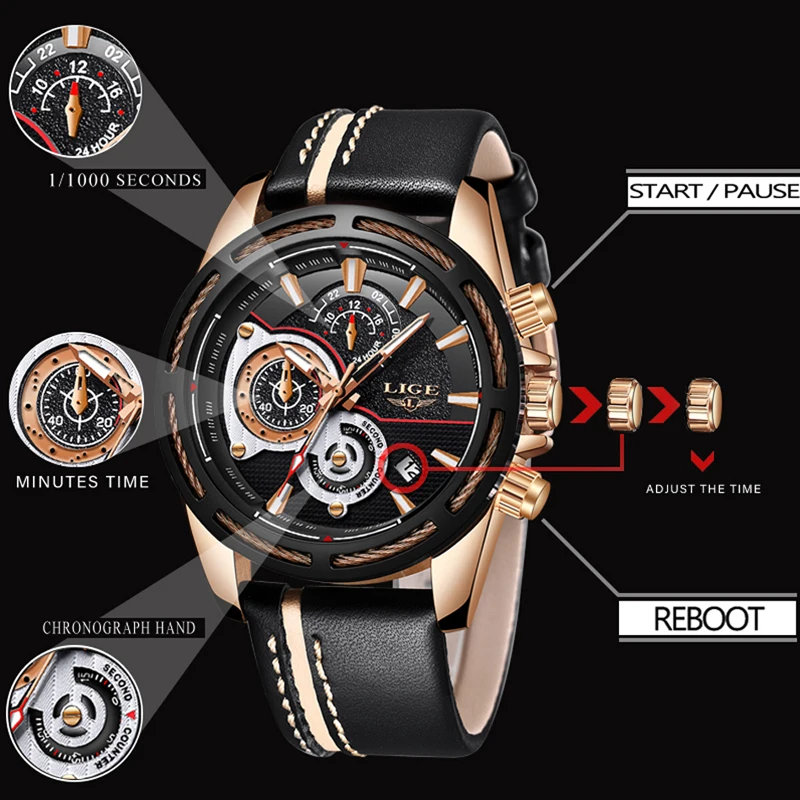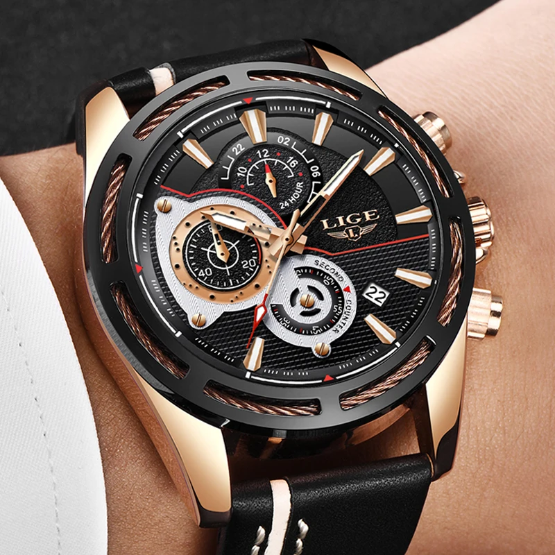 Product Name: LIGE новые мужские часы Топ бренд Роскошные Кварцевые часы мужские календарь кожа военные водонепроницаемые спортивные наручные часы Relogio ...