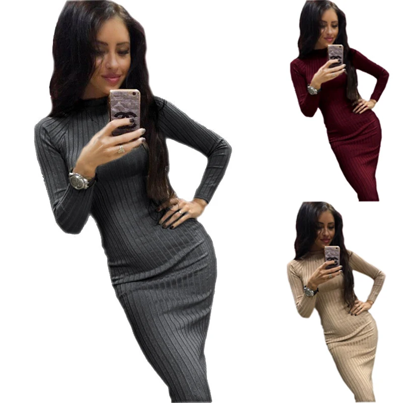 Special Offer Сексуальное трикотажное платье свитер с длинным рукавом, Дамское модное осеннее платье для женщин, тонкое зимнее платье Discount 0% Today!
