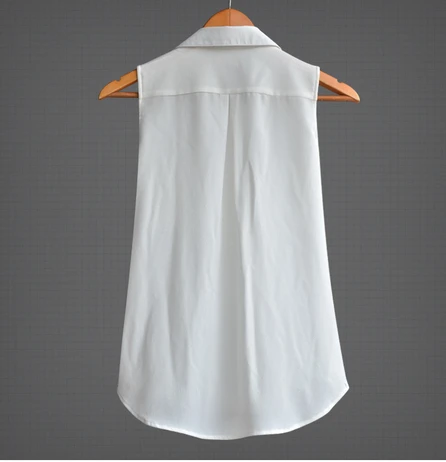 Product Name: Женские шифоновые рубашки без рукавов с отложным воротником, белые топы, летние блузки, 2019
