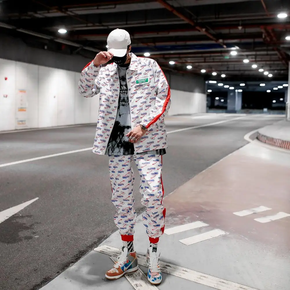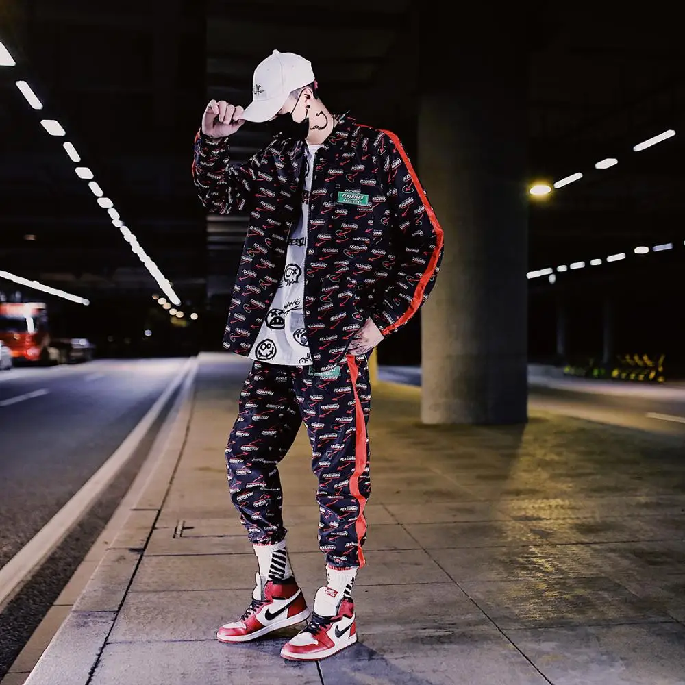 (31% Off) Купить Новинка; сезон весна осень; спортивные костюмы для мужчин; модная спортивная одежда в стиле Харадзюку; комплект из 2 предметов; куртка + брюки... Цена Дешево