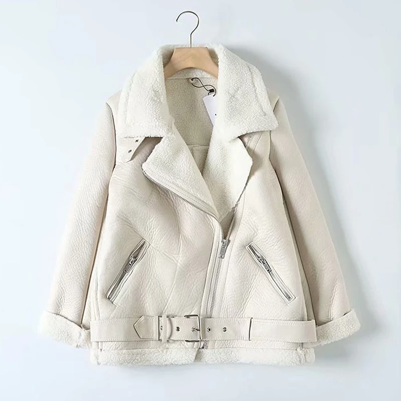 Product Name: FTLZZ, женская зимняя куртка из искусственной овечьей кожи, мотоциклетная куртка из искусственной кожи на молнии, куртка из овечьей шерсти с м...