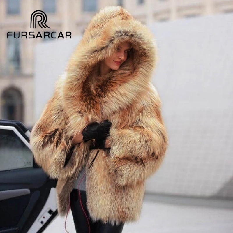 (32% Off) Купить Женское пальто с мехом лисы FURSARCAR, роскошная верхняя одежда из меха серебристой на зиму, 2019 Цена Дешево