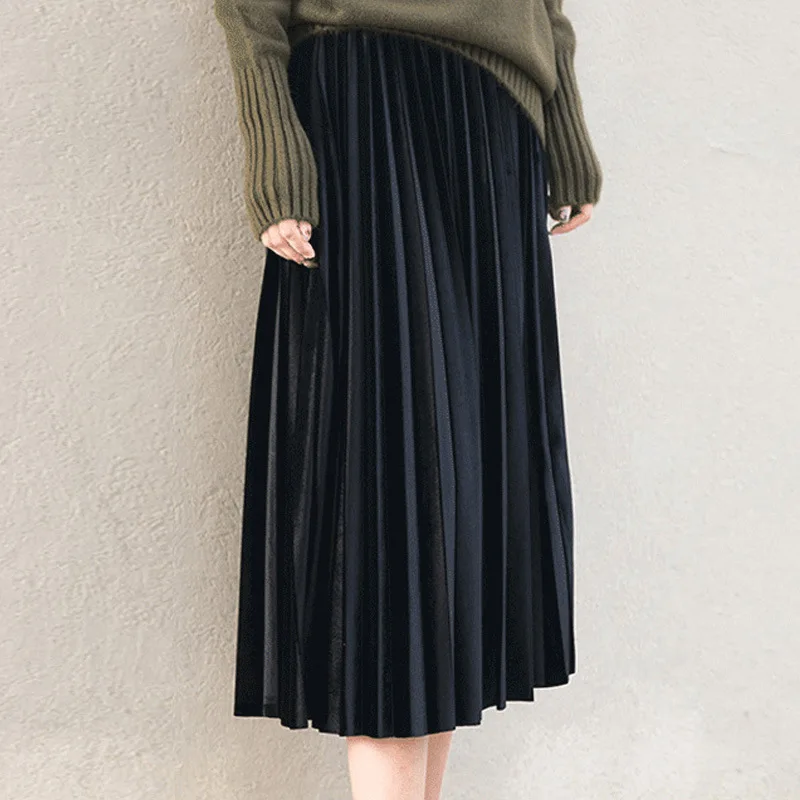 Product Name: Весна Осень 2020, большая плиссированная юбка цвета металлик, женские модели, блестящие бархатные свободные юбки с эластичной резинкой на тал...