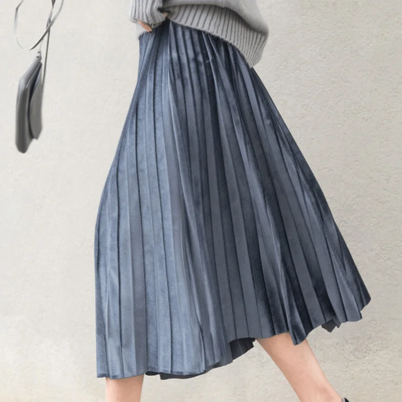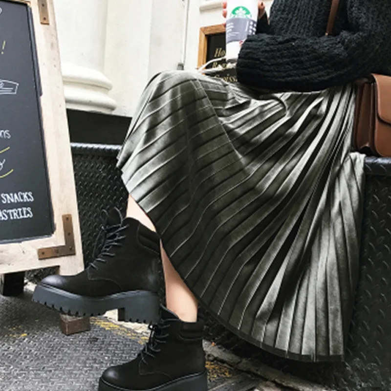 Special Offer Весна Осень 2020, большая плиссированная юбка цвета металлик, женские модели, блестящие бархатные свободные юбки с эластичной резинкой на тал... Discount 35% Today!