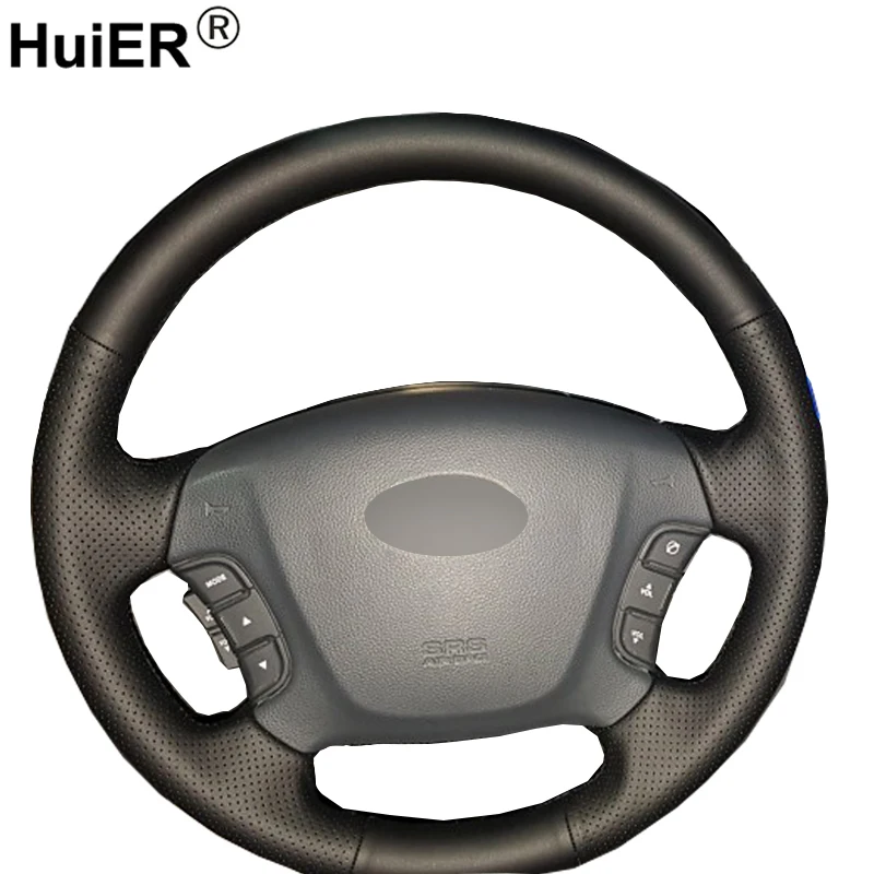 Product Name: HuiER ручной швейный чехол рулевого колеса автомобиля дышащая Нескользящая черная кожа для Kia Carens 2007 2011 Автомобильный Стайлинг автомобильные ...