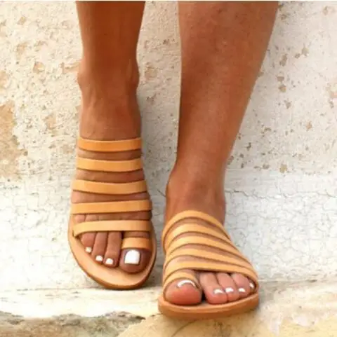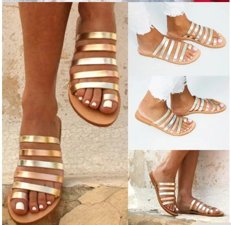 (47% Off) Купить Женские сандалии на плоской подошве; Летние сандалии гладиаторы; женские шлепанцы ремешке; Вьетнамки в римском стиле; повседневн... Цена Дешево
