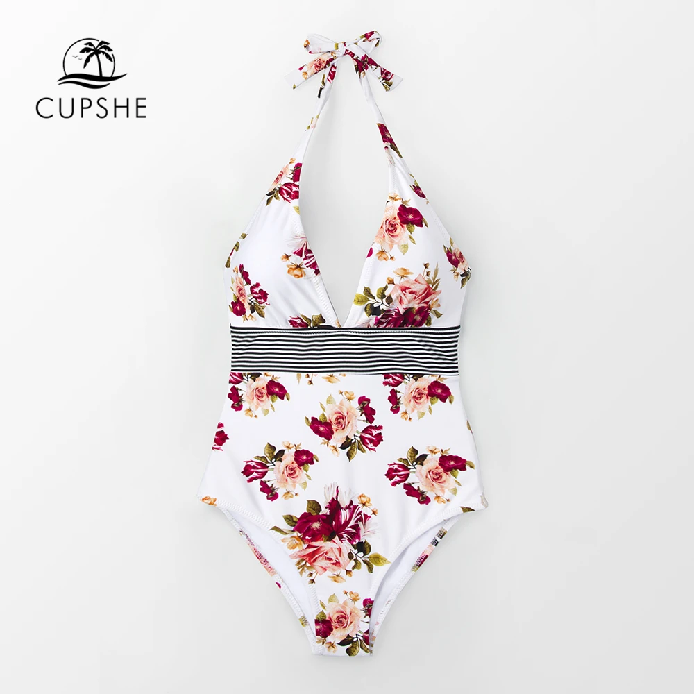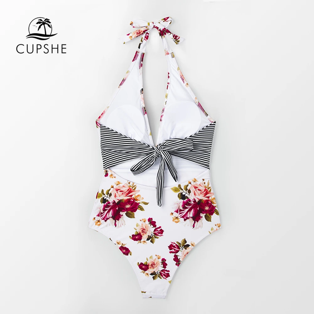 (48% Off) Купить CUPSHE цветочный принт Холтер цельный купальник женский сексуальный завязанный бантик на спине Монокини 2020 пляжные купальные костюмы для дев... Цена Дешево