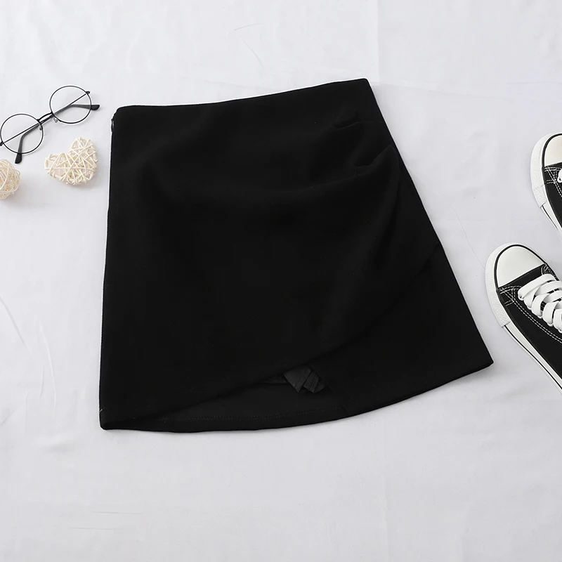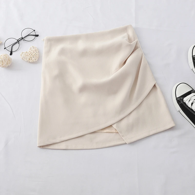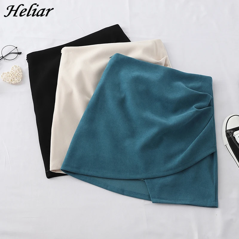 Product Name: HELIAR однотонная Асимметричная юбка трапециевидная микро пляжная юбка в консервативном стиле с плиссированной юбкой с высокой талией для же...
